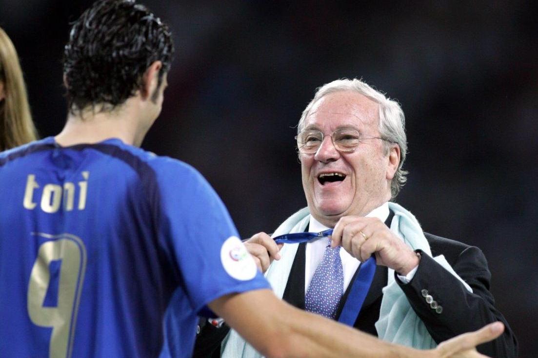Nella foto Guido Rossi premia Luca Toni dopo il successo nella finale della Coppa del Mondo