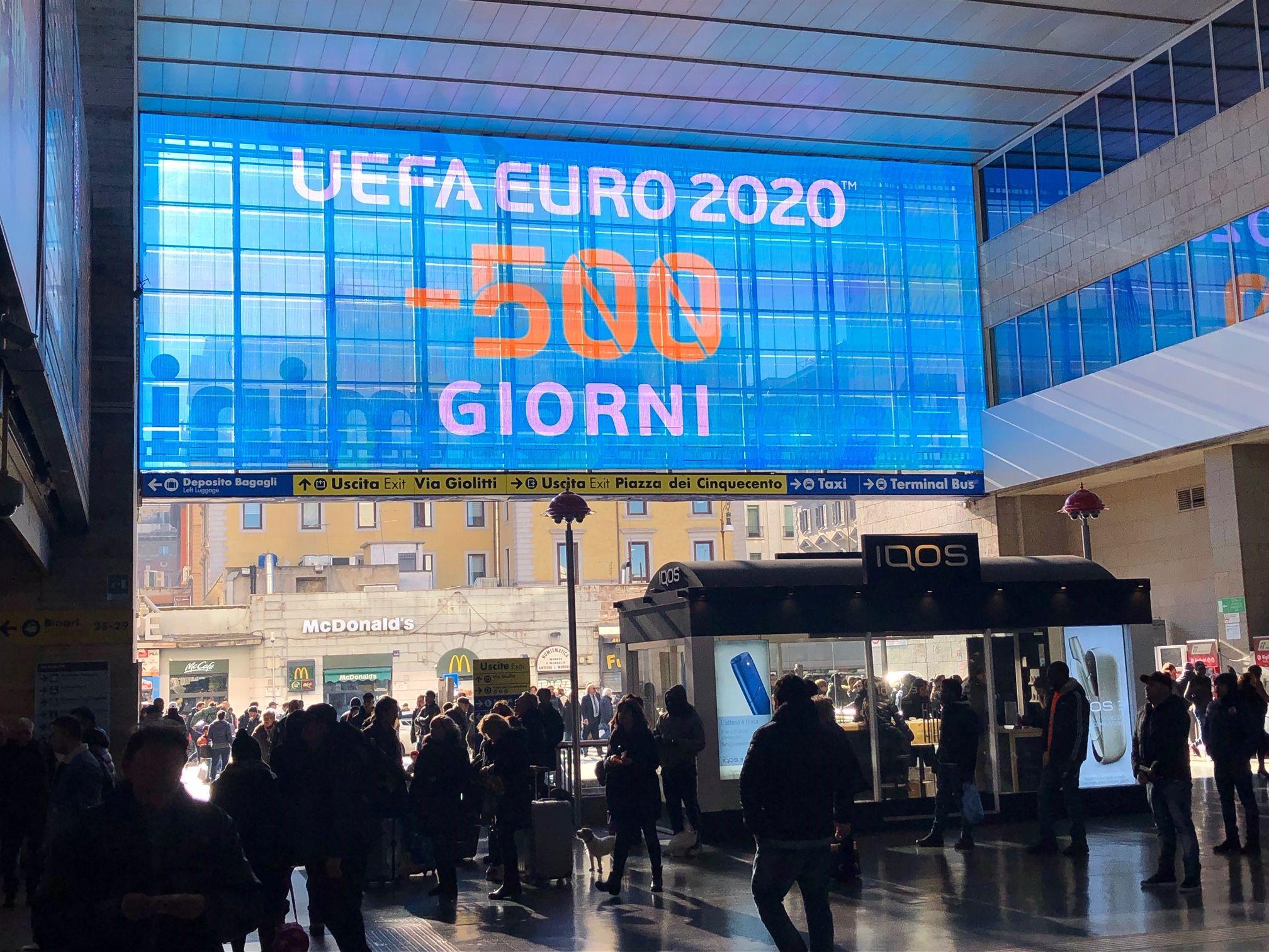 Ma non è tutto, perché domani altri due simboli e snodi cruciali di Roma - visitati ogni giorno da migliaia di persone - cominceranno a entrare in clima Europeo. L’aeroporto Leonardo Da Vinci di Roma Fiumicino e la stazione Termini diffonderanno attraverso i loro maxischermi il logo ufficiale di UEFA EURO 2020. Manca un anno all’evento più importante del calcio europeo ma viverlo in prima persona è già possibile…