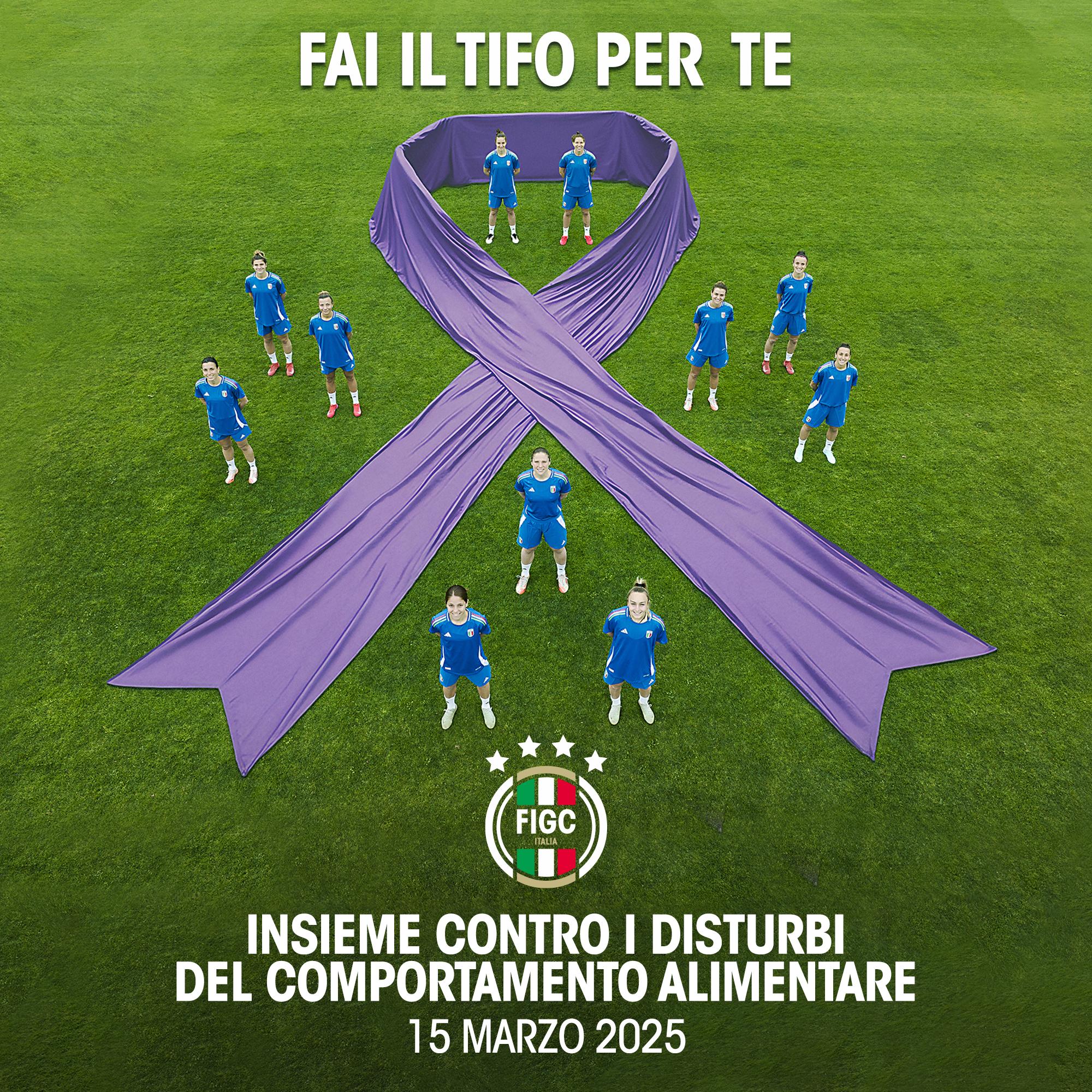 ‘Fai il tifo per te’. È questo il claim dell’iniziativa promossa dalla FIGC in occasione della Giornata nazionale dei disturbi del comportamento alimentare, che si celebra il 15 marzo per sensibilizzare la popolazione su un fenomeno sempre più diffuso. Nella grafica pubblicata sul sito e sui social della Federazione, insieme alle calciatrici della Nazionale Femminile, compare il Fiocchetto Lilla, simbolo della lotta contro anoressia, bulimia e le altre disfunzioni dell’alimentazione.