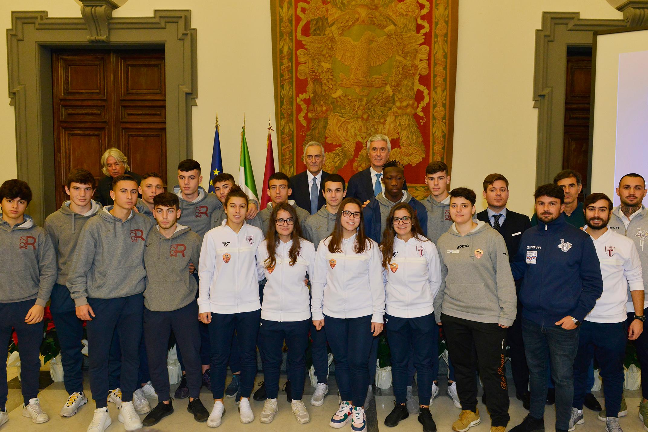 "Ringrazio per quello che il mondo del calcio dilettantistico mette a disposizione per la crescita del calcio e dello sport'', ha aggiunto il presidente federale nella Sala della Protomoteca, dove alla presenza del presidente e amministratore delegato di Sport e Salute Rocco Sabelli e del presidente del CONI Giovanni Malagò è stato presentato il francobollo celebrativo della LND emesso lo scorso 12 dicembre da Poste Italiane in 500 mila esemplari. Presenti in sala anche gli ex presidenti federali Giancarlo Abete, neo commissario della Lega Serie A, Carlo Tavecchio, Franco Carraro e Antonio Matarrese, oltre a numerosi club della Regione e della Capitale in rappresentanza della Serie D, del calcio femminile, ma anche del futsal e del beach soccer