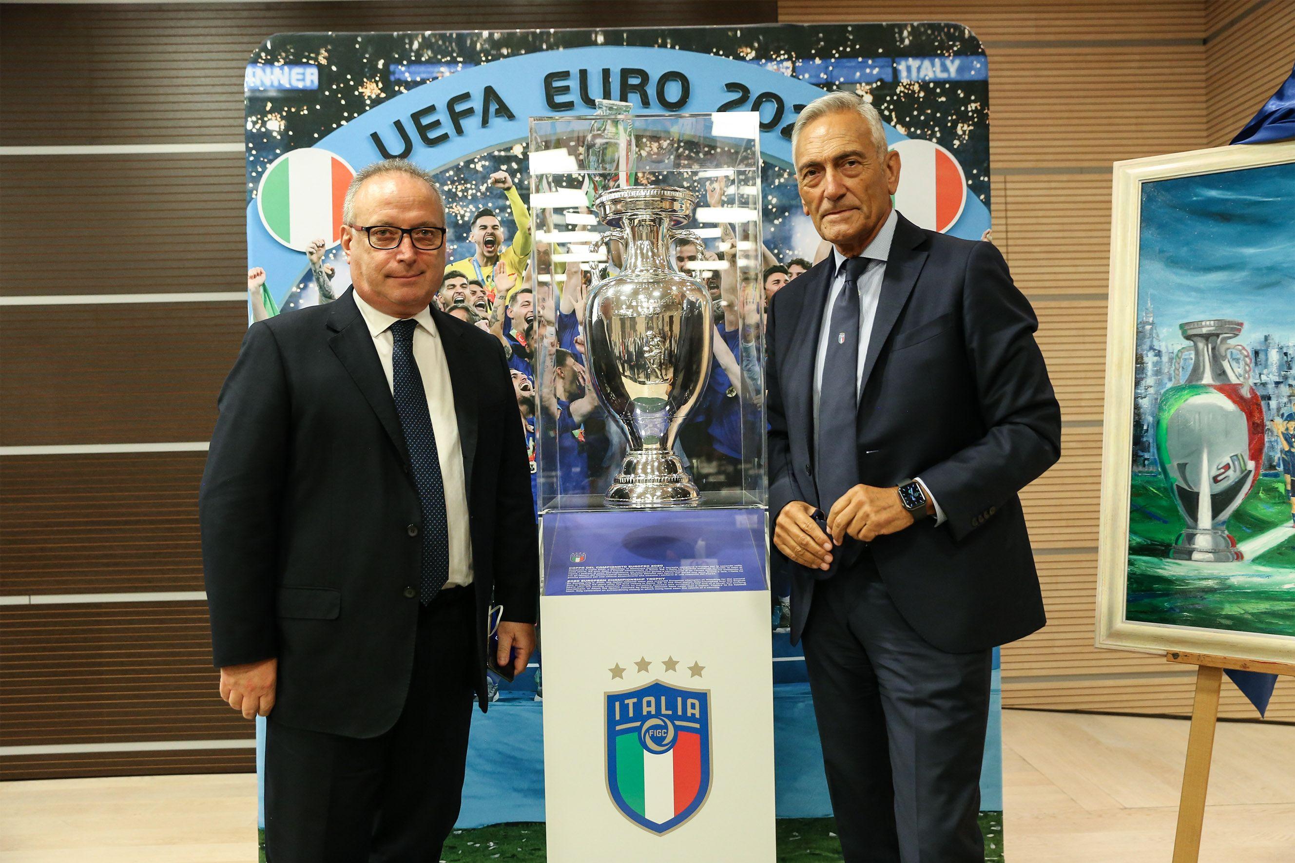 "Il lascito più bello di questo Europeo – ha dichiarato Gravina presentando la coppa e ringraziando per la splendida accoglienza – è stato vedere gli Azzurri diventare testimoni di valori, di amicizia e di unità inviando messaggi stupendi e rinnovando il rapporto d’amore con tutti i tifosi italiani".
