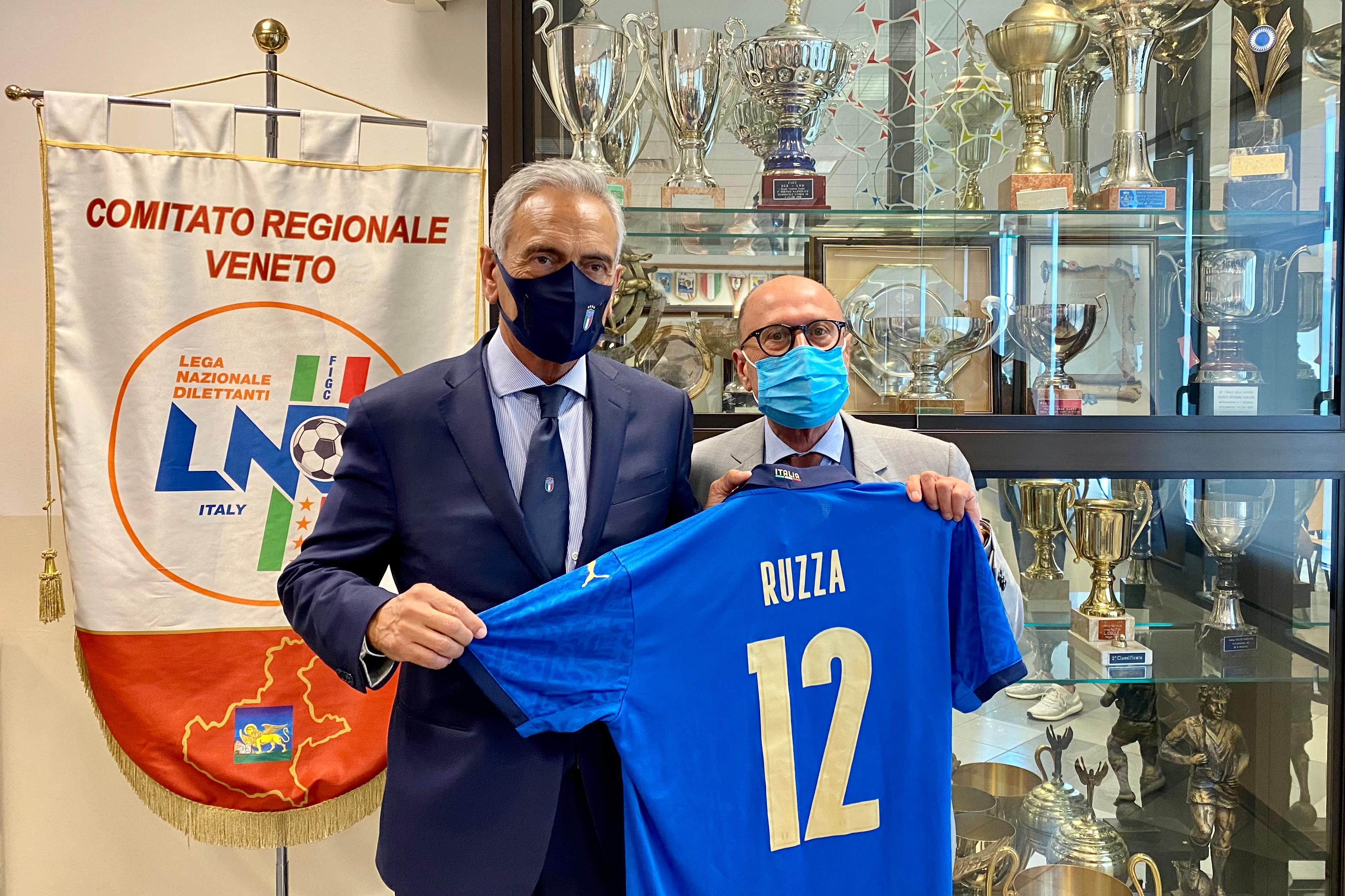 Il numero uno della Federazione ha incontrato in laguna il Consiglio Regionale presieduto da Giuseppe Ruzza e nell’incontro con i media ha colto l’occasione per congratularsi ancora una volta con il Venezia per il ritorno in Seria A dopo 19 anni alla presenza dello Special Advisor per le infrastrutture Andrea Cardinaletti, che gli ha donato una maglia personalizzata.
