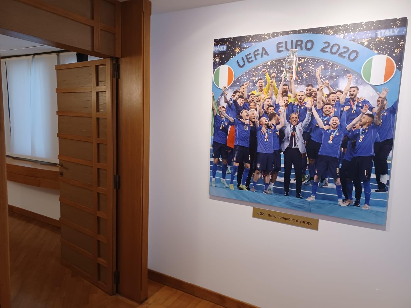 Nella Sala Paolo Rossi una nuova gigantografia mostra il trionfo degli Azzurri a Wembley, mentre la coppa Henry Delaunay campeggia in bella mostra alle spalle del presidente Gabriele Gravina nella conferenza stampa che fa seguito alla riunione del Consiglio federale, la prima dopo il successo a EURO 2020. Presidente, ma anche primo tifoso, dalle tre gare del girone disputate allo Stadio Olimpico di Roma fino alla finale di Wembley seguita in tribuna accanto al Capo dello Stato Sergio Mattarella, Gabriele Gravina ha vissuto al fianco di Chiellini e compagni l’entusiasmante cavalcata che ha portato la Nazionale a conquistare il secondo titolo Europeo della sua storia. Un successo che nasce da lontano, frutto anche della riorganizzazione del Club Italia portata avanti dal numero uno della FIGC e più in generale di quel Rinascimento azzurro che ha permesso all’Italia del calcio di eliminare le scorie della mancata qualificazione al Mondiale russo: "La vittoria dell’Europeo – ha dichiarato il presidente Gravina incontrando i giornalisti – dà un grande impulso alla ripartenza sociale ed economica dell’Italia, dà fiducia al Paese e questo è per noi motivo di orgoglio".