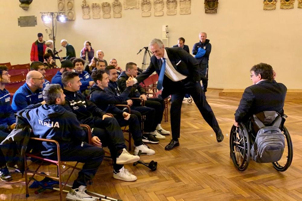 Questa mattina, nella Sala Nievo di Palazzo del Bo, si è tenuto il convegno dal titolo 'L'altra faccia del calcio italiano. Lo sport paralimpico nella Federazione Italiana Giuoco Calcio', al quale ha partecipato anche il presidente della FIGC Gabriele Gravina. Presenti in sala Renzo Vergnani, Ct della Nazionale Calcio Amputati, Rossano Mastrodomenico, Ct della Nazionale Calcio a 5 B1 Non Vedenti, Sebastiano Gravina, calciatore della Nazionale calcio a 5 B1 non vedenti, Luigi Magi e Francesco Messori calciatori della Nazionale Calcio Amputati, oltre a diversi volontari del mondo paralimpico e a tanti studenti.