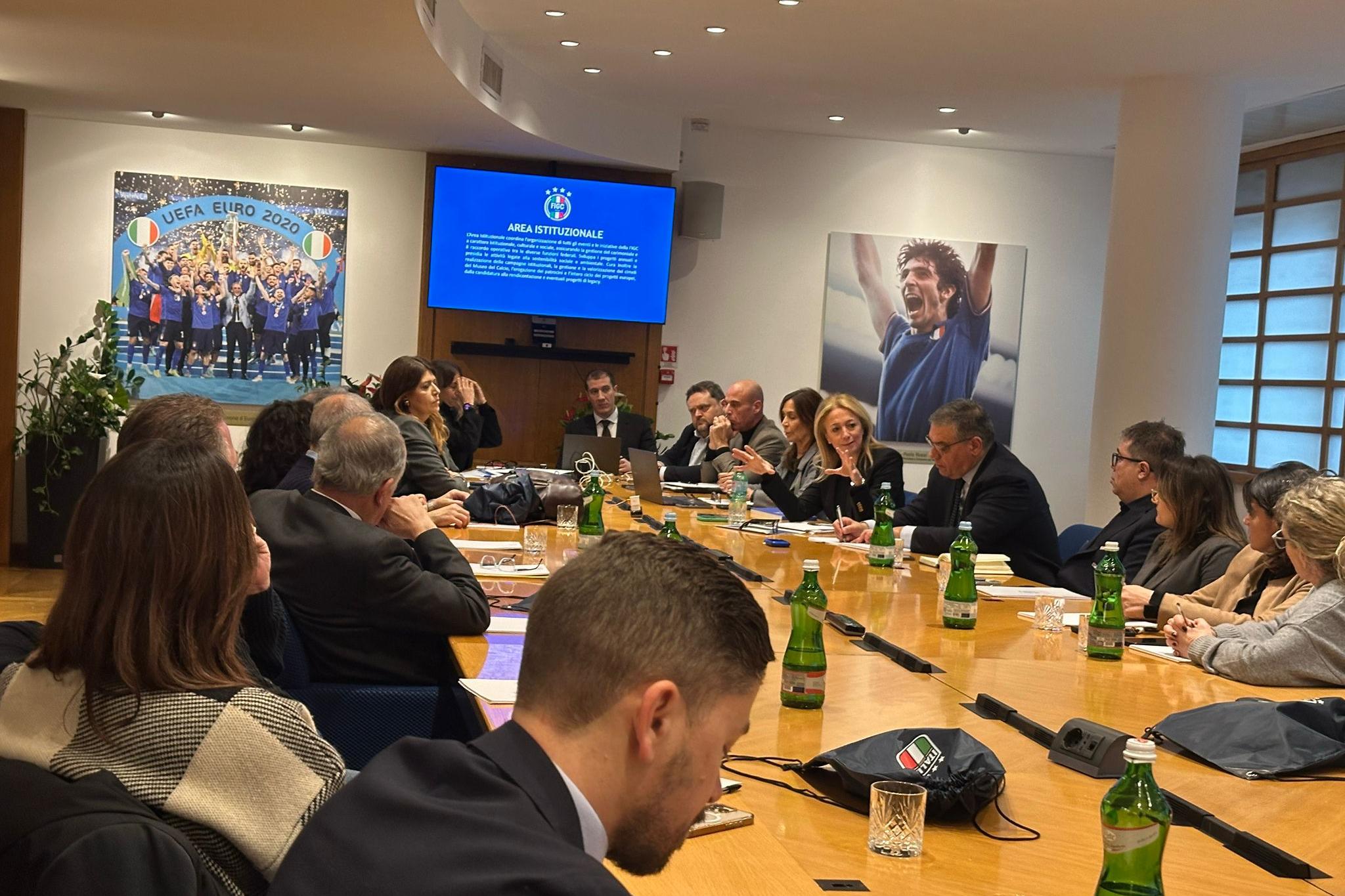 LA SOSTENIBILITA’. Durante l’incontro è stata approfondita anche la tematica riguardante la Sostenibilità Sociale e Ambientale con la presentazione del format di sostenibilità gara introdotto dalla FIGC a partire da ottobre 2024 per le gare casalinghe della Nazionale A maschile. Un modello operativo che integra azioni di accessibilità - come audiodescrizione, quiet room e coinvolgimento di persone con vulnerabilità all’interno del catering - e di economia circolare, con particolare attenzione alla ristorazione sostenibile e al ritiro delle eccedenze alimentari, in linea con la Strategia di Sostenibilità UEFA e FIGC. Per quanto riguarda la Sostenibilità degli Eventi come investimento, sono stati illustrati i modelli adottati nella predisposizione dei Bid Dossier di candidatura FIGC ad ospitare Grandi Eventi internazionali, e i modelli strategici adottati dalla UEFA per le competizioni UEFA EURO 2024 Germany e UEFA Super Cup Udine 2025.