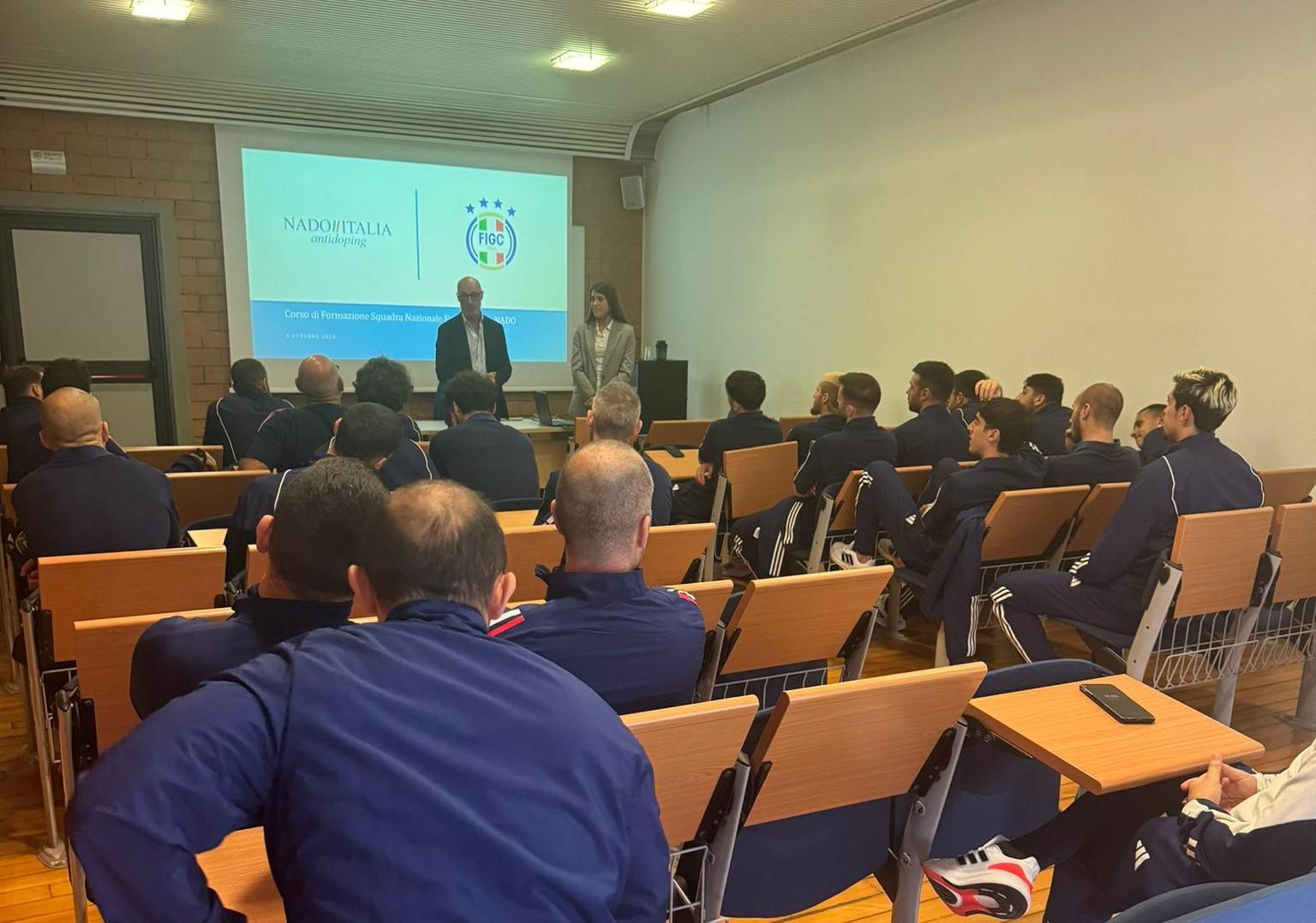 Quest’oggi, nel quinto appuntamento stagionale, Paolo Nucci per la Commissione Federale Antidoping e Chiara Vari per NADO Italia hanno incontrato la Nazionale A di Futsal e il loro staff medico e tecnico, in raduno presso il Centro di Preparazione Olimpica di Roma "Giulio Onesti".