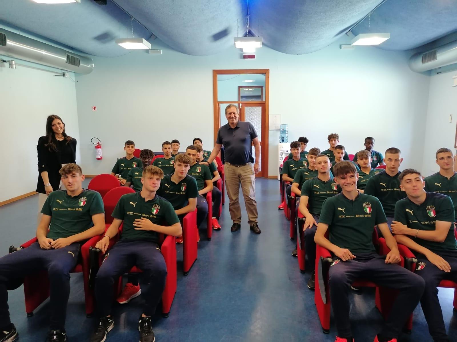 In occasione del quinto incontro annuale del programma educativo antidoping della UEFA ‘HatTrick V’ la Commissione Federale Antidoping e NADO Italia hanno incontrato nella mattinata di oggi tutti gli atleti convocati e tutti i componenti dello staff tecnico e medico della Nazionale Under 16, in ritiro presso il Centro di Preparazione Olimpica di Tirrenia in vista della doppia amichevole con la Spagna in programma domani e giovedì.