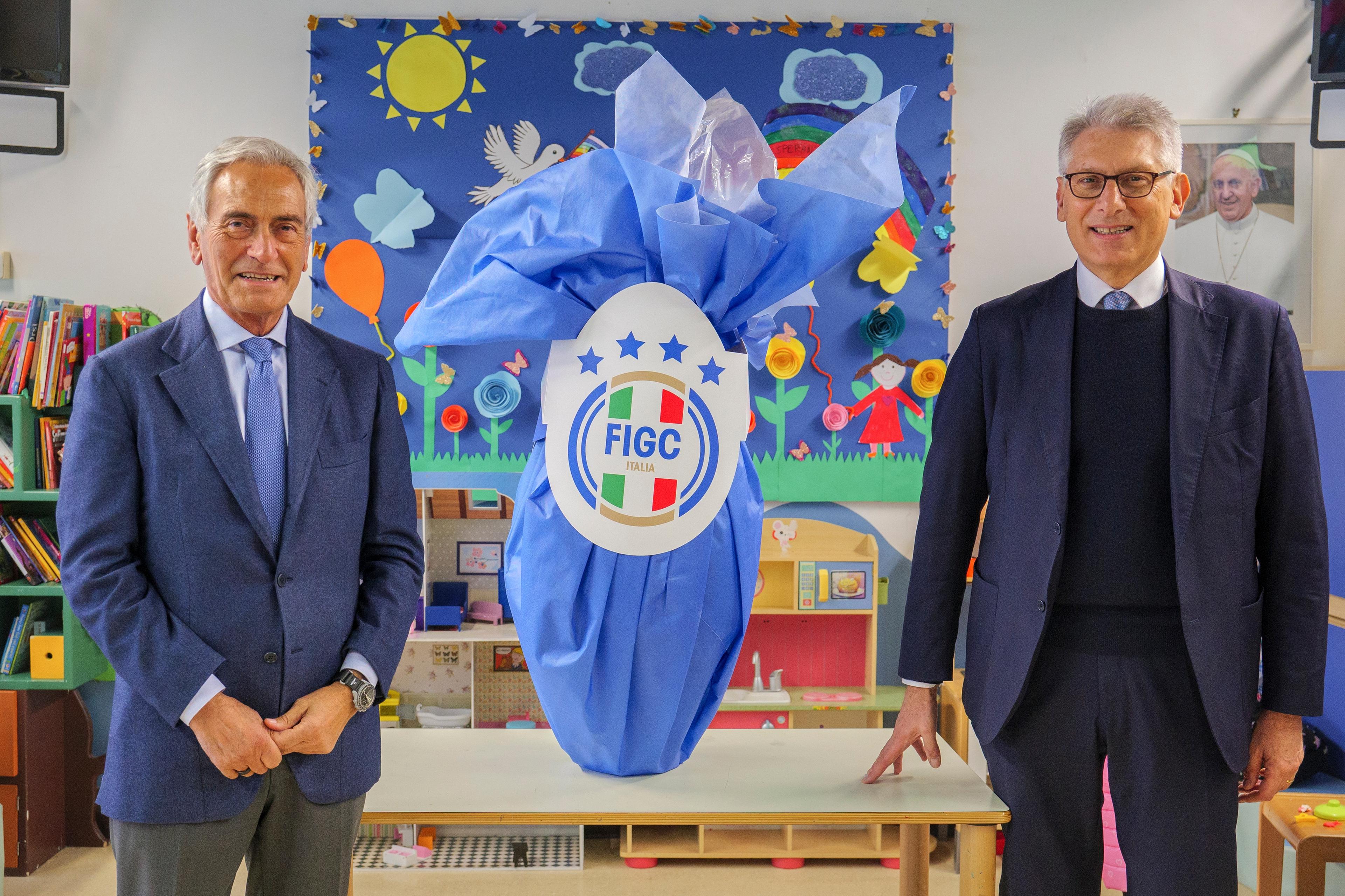 Accolto questa mattina nella sede del Gianicolo dal presidente dell’Ospedale Pediatrico Bambino Gesù, il professor Tiziano Onesti, il presidente della FIGC Gabriele Gravina ha confermato la vicinanza e il sostegno della Federazione all’ospedale e ai suoi piccoli pazienti: "La FIGC è sempre al fianco dell’Ospedale Bambino Gesù per la lodevole e qualificata attività che svolge quotidianamente, in virtù di una partnership consolidata a cui sono particolarmente legato. Siamo vicini ai bambini che qui trovano cura e conforto e la simbolica donazione di un uovo gigante, in occasione delle festività pasquali, rappresenta la conferma del sostegno economico concreto che ogni anno riconosciamo alla struttura guidata dal presidente Onesti".