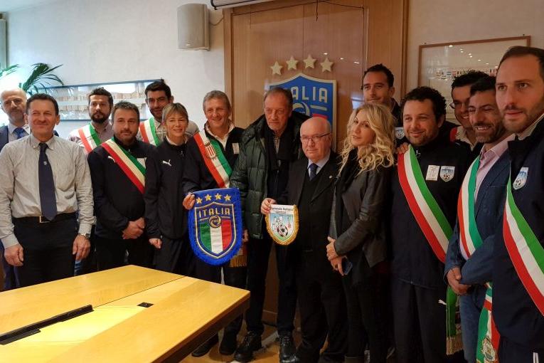 “Complimenti perché rappresentate, anche in campo, una delle componenti migliori di questo Paese e soprattutto per l’entusiasmo e la passione con cui portate avanti tante importanti iniziative a carattere sociale”. Con queste parole il presidente federale Carlo Tavecchio, ex sindaco della sua città natale Ponte Lambro (CO), ha accolto la Nazionale Italiana Sindaci (NIS), ricevuta questa mattina nella Sala del Consiglio della FIGC insieme al vicepresidente Renzo Ulivieri e al direttore generale Michele Uva in un incontro a cui ha preso parte anche Veronica Nicotra, Segretario Generale dell’Associazione dei Comuni Italiani (ANCI).