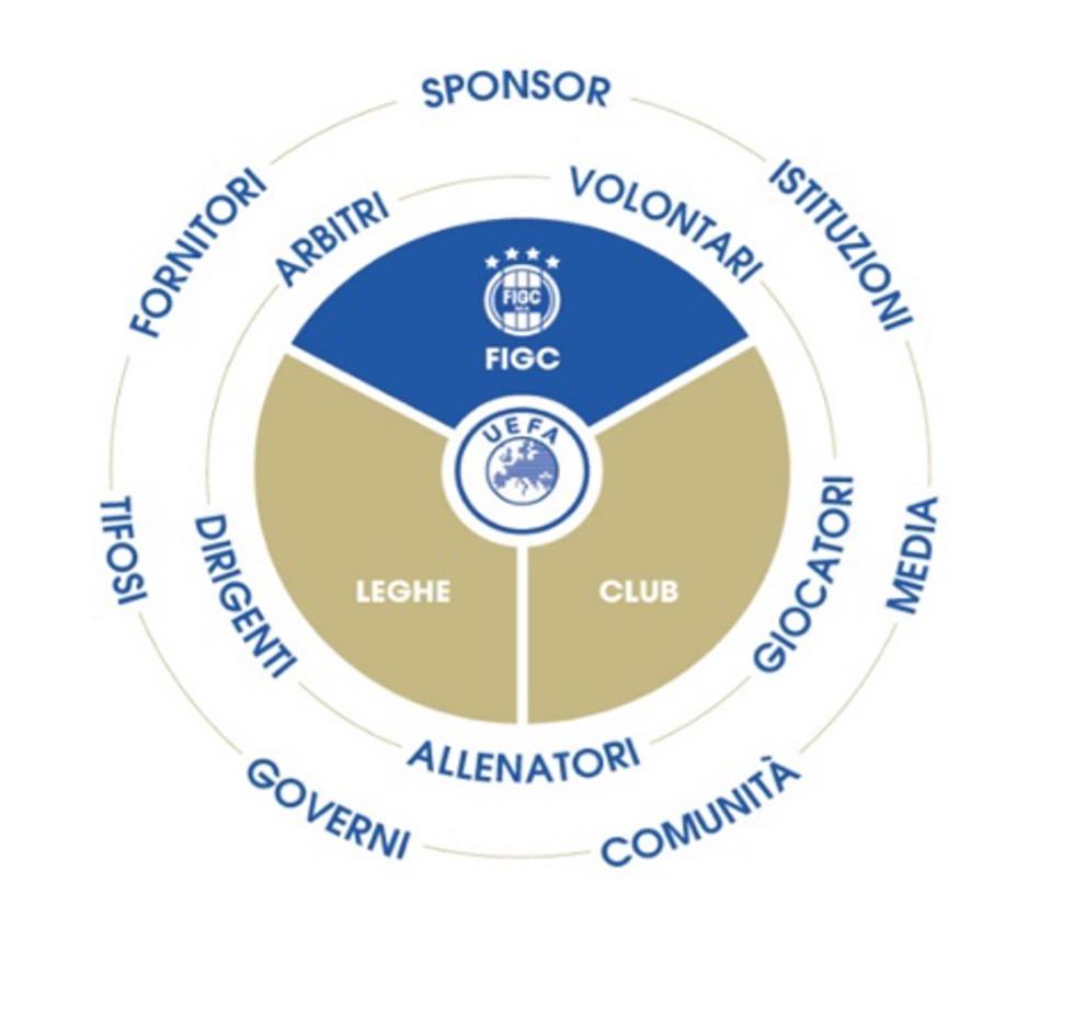 L’azione della FIGC punta inoltre a favorire quell’effetto a cascata che permetta di generare impatti significativi e duraturi, per il calcio e per il Paese, attraverso il coinvolgimento, qualitativo e quantitativo, dei diversi stakeholder dell’ecosistema calcistico: le Leghe, le Associazioni tecniche, i club, così come i volontari, gli sponsor, i tifosi, i fornitori di servizi, i Media, le comunità e le amministrazioni locali, le istituzioni ed il Governo, ciascuno nei rispettivi ambiti, con i rispettivi obiettivi e le rispettive azioni.