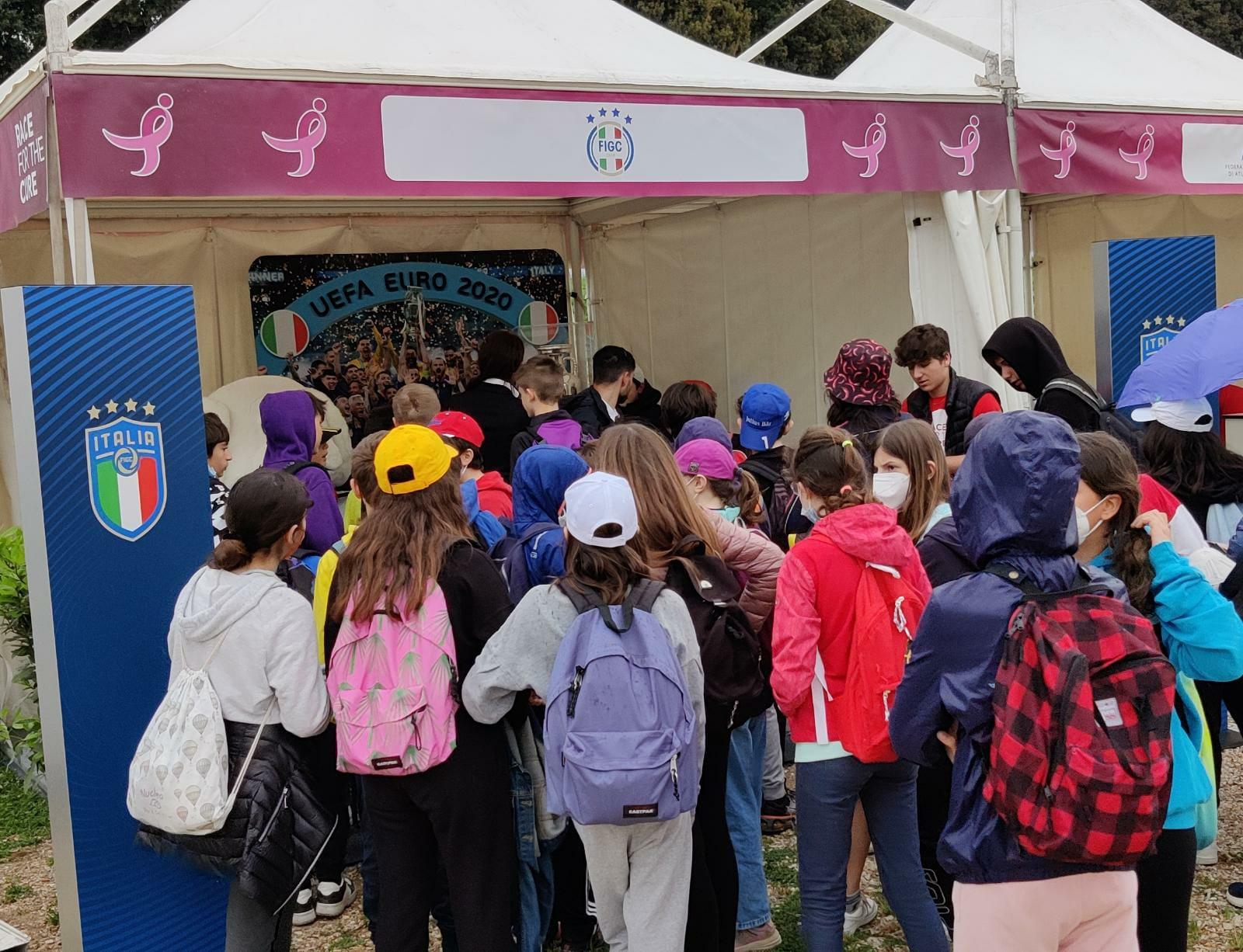 Lo stand della Figc con la Coppa Europa conquistata lo scorso luglio a Wembley dagli Azzurri e le attività sportive organizzate dallo staff tecnico del Settore Giovanile e Scolastico sono stati i grandi protagonisti del "Villaggio della Salute" inaugurato giovedì al Circo Massimo a Roma per accompagnare nel corso del eeek end la "Race for the cure" la manifestazione organizzata da Komen Italia per la lotta ai tumori del seno in Italia e nel mondo. In attesa della emozionante corsa di 5 km e passeggiata di 2 km nelle vie del centro città, in programma domani, domenica 8 maggio, dalle ore 10.00, il "Villaggio della Salute" ha per ora conquistato i romani, che hanno visitato gli stand, dove oltre a diverse attività sportive sono offerte gratuitamente consulenze specialistiche ed esami diagnostici (prevalentemente a donne selezionate da associazioni di volontariato sociale), in collaborazione con il Policlinico Universitario Gemelli IRCCS.