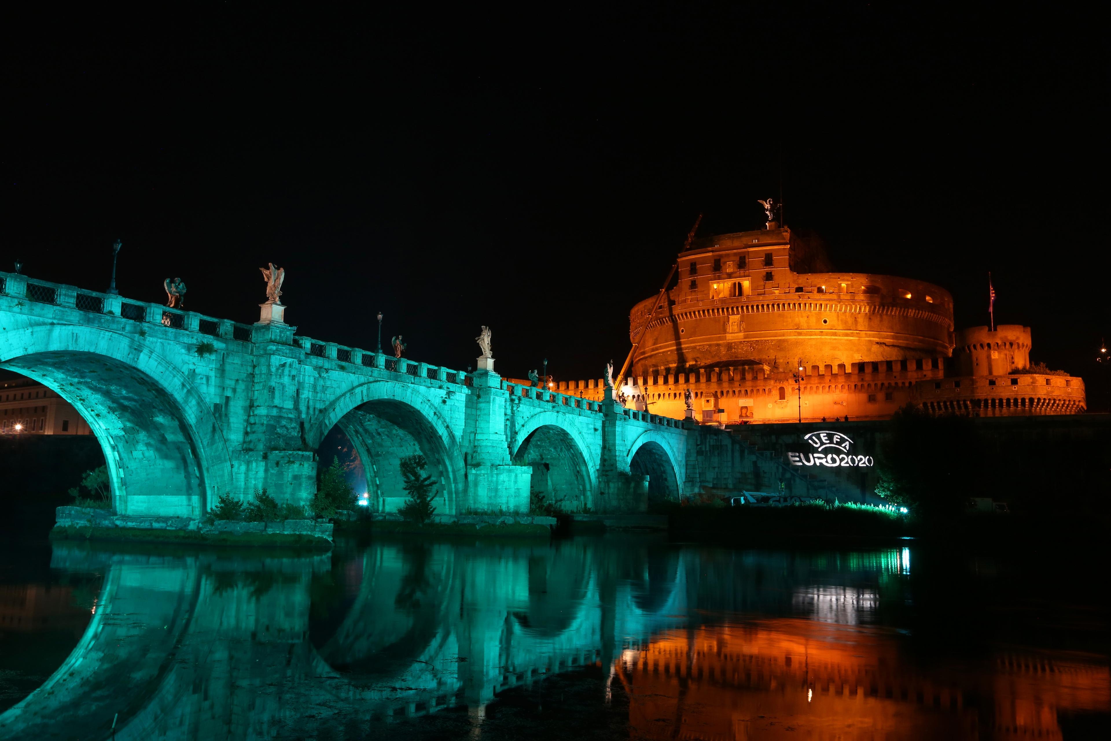 Ieri sera Ponte Sant’Angelo ha irradiato il colore ufficiale di UEFA EURO 2020, il turchese, mentre il logo ufficiale "UEFA EURO 2020" è stato proiettato sugli argini sinistro e destro del fiume Tevere. Un panorama da brividi, uno show di luci – l’illuminazione è stata di color acqua marina sul ponte e in bianco – che ha richiamato passanti e curiosi, che si sono gustati lo spettacolo e hanno immortalato il tutto con selfie e video.