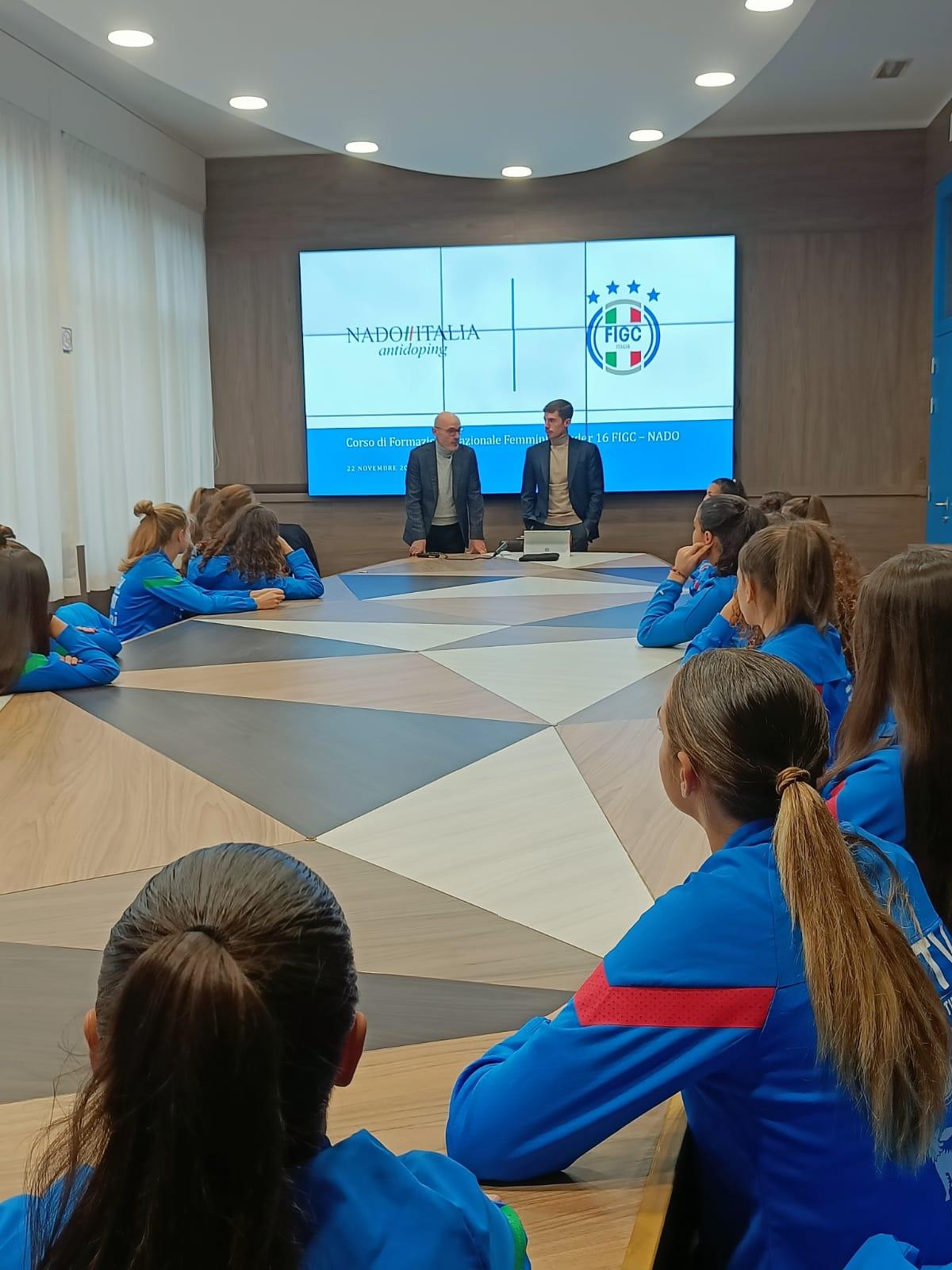 Nell’ambito del programma educativo antidoping UEFA HatTrick V, oggi a Coverciano la Commissione Federale Antidoping e NADO Italia hanno incontrato le ragazze della Nazionale Under 16 Femminile, ospiti in questi giorni del Centro Tecnico Federale per il penultimo raduno dell’anno.