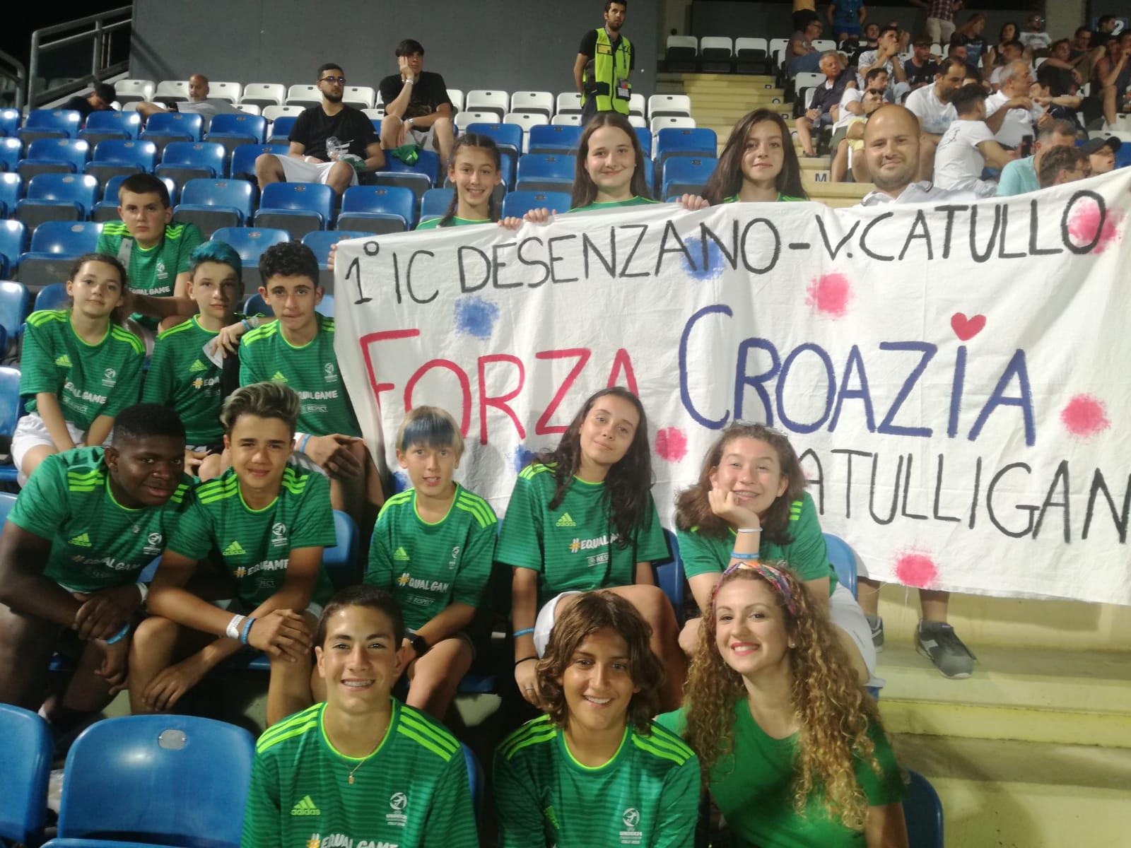 I Catulligans hanno adottato la Croazia e, grazie alla passione di Giuseppe Schiavariello, il prof di lettere che in 2ª A insegna geografia, e ai suggerimenti di due alunni di origine croata, hanno fatto un lavoro bellissimo. Hanno studiato le storie e le vite di scienziati e matematici croati con la professoressa Antonella Rimoli, quelle di musicisti e compositori con la professoressa Claudia Camozzini, e poi si sono concentrati sull’inno croato, che hanno imparato e poi riprodotto col flauto dolce; hanno creato coreografie e si sono esibiti nel saggio finale davanti a tutta la scuola; infine hanno organizzato una rassegna teatrale. Il primo posto a livello nazionale li ha portati a San Marino per la partita Francia-Croazia, dove hanno accompagnato in campo i «loro» giocatori e la bandiera della nazione adottata. Unica delusione il risultato, ma l’esperienza rimarrà indimenticabile.