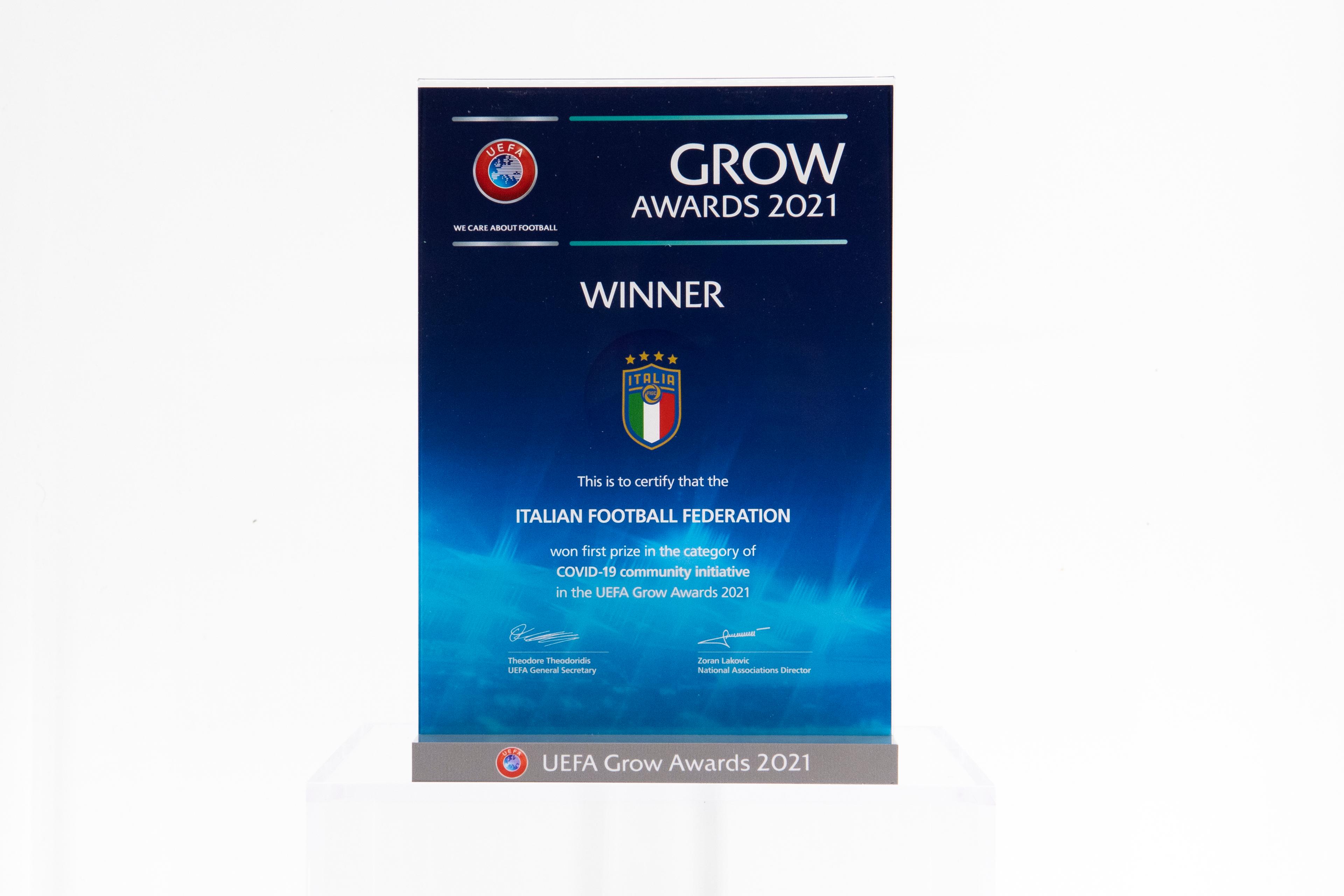 Un prestigioso riconoscimento arriva alla FIGC dalla UEFA, che ha premiato la Federazione per le iniziative di responsabilità sociale a favore del territorio realizzate durante il periodo pandemico. L'eccellenza fuori dal campo è stata infatti celebrata questa settimana con gli UEFA Grow Awards, che riconoscono i risultati delle federazioni calcistiche nazionali in otto aree di sviluppo strategico.