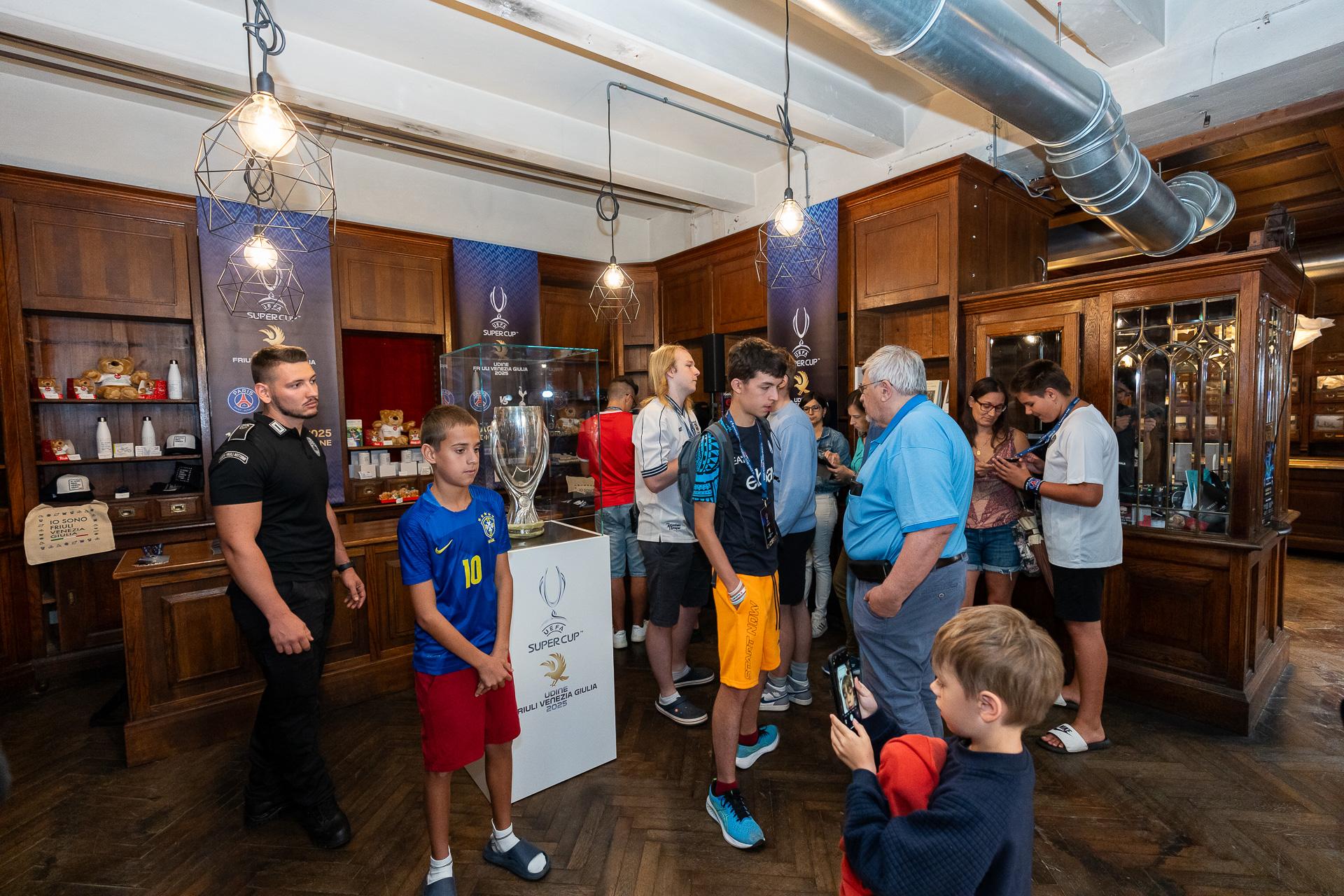 La 'Trophy Experience' della UEFA Super Cup 2025 è iniziata da Gorizia, Capitale europea della Cultura 2025 assieme a Nova Gorica. Fino a giovedì 31, dalle 10 alle 12.30 e dalle 15.30 alle 19.30, negli spazi della Ferramenta Krainer di via Rastello, sarà possibile ammirare l'esposizione dei trofei della Champions League, dell'Europa League e quello che verrà assegnato allo stadio Friuli di Udine mercoledì 13 agosto nella sfida tra Paris Saint-Germain e Tottenham Hotspur, della quale da oggi è possibile acquistare i biglietti esclusivamente su UEFA.com.