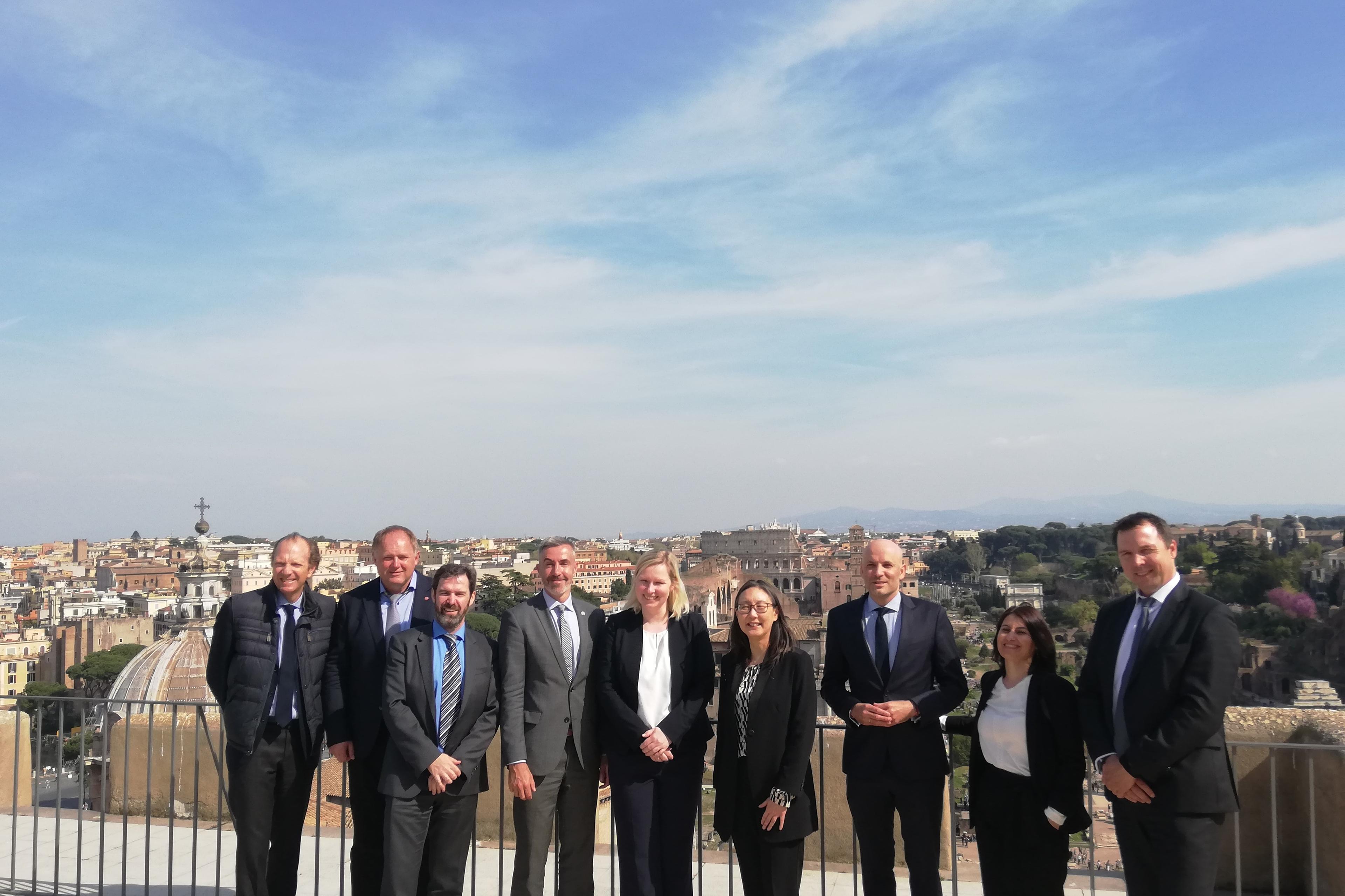 Nella mattinata, primo incontro all’Olimpico: a fare gli onori di casa per la FIGC è intervenuto il Direttore Generale Marco Brunelli, insieme ai rappresentanti del CONI per lo Stadio Diego Nepi e Andrea Santini; presenti per la UEFA Sharon Burkhalter-Lau (Director of Operations), Andreas Schär (Head of Venue Operations), Guillaume Poisson (Head of Host Country Projects); Philippe Margraff (Head of Revenue Operations), Catalina Navarro (Head of Events), Christopher Gibbons (Head of Events Operations), Daniel Marion (Chief of ICT), David Farrelly (Head of EURO 2020 Communications) e Katharina Scheel (Planning & Project Coordination Expert). Gli standard attuali dell’Olimpico e gli interventi previsti per Euro 2020 che sono stati illustrati in questa occasione sono stati molto apprezzati dai rappresentanti della UEFA, considerato che lo Stadio ospiterà la gara inaugurale e in totale 4 partite del Torneo, compreso uno dei Quarti di Finale.