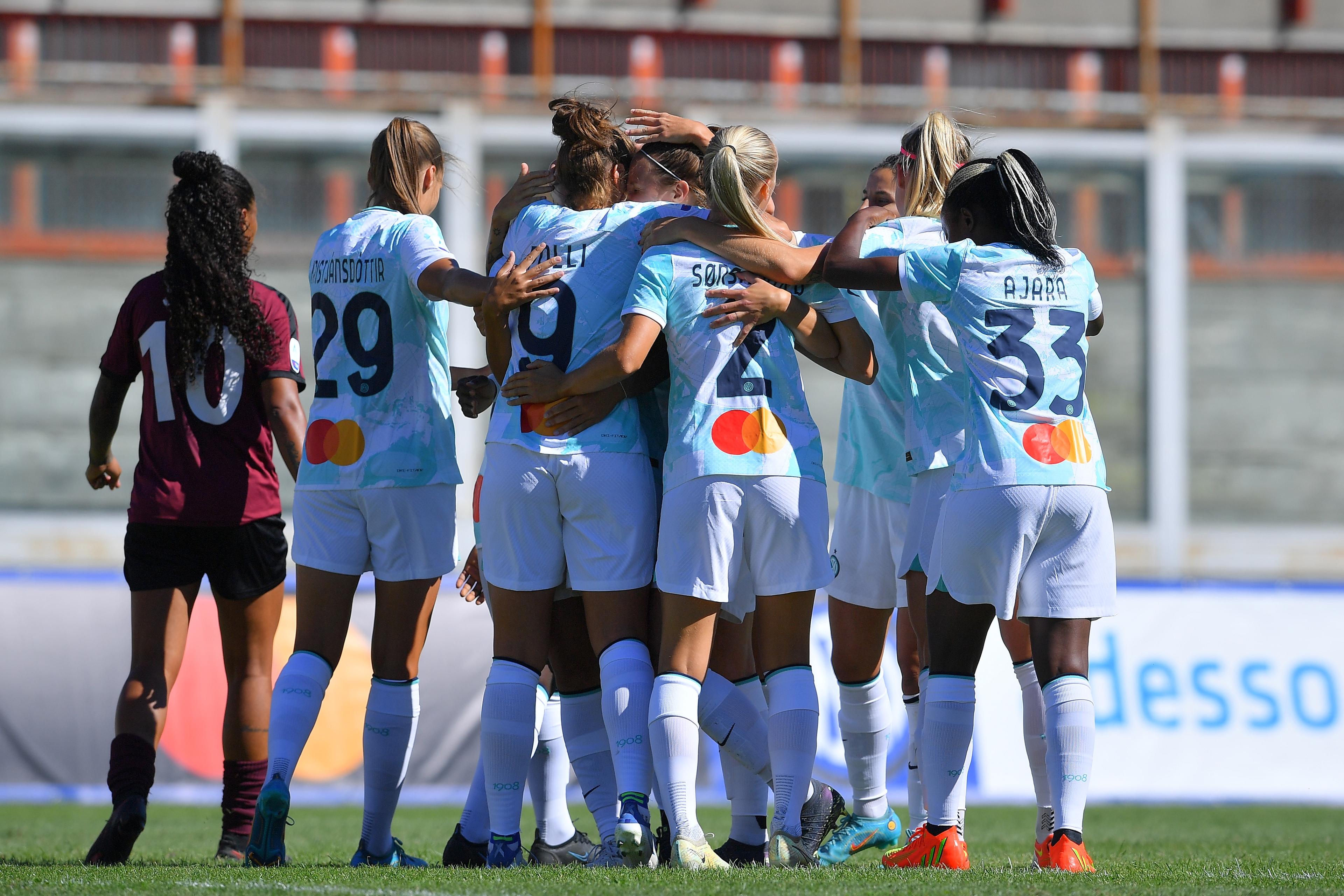 A fine primo tempo il punteggio resta invariato ma a inizio ripresa le nerazzurre si portano sul 3-0 ancora con Polli: la ventiduenne marchigiana, servita da Chawinga, salta la difesa granata e cala il tris, siglando la sua seconda tripletta nel massimo torneo e diventando solo la seconda giocatrice dell’Inter capace di segnare almeno tre reti nella stessa partita nella competizione. Prima di lei ci era riuscita Tarenzi – quattro contro la San Marino Academy nel maggio 2021 – ora alla Sampdoria. Al 54’ il Pomigliano prova a riaprire il match con Amorim Dias, brava a capitalizzare – dopo soli due minuti dal suo ingresso in campo – il passaggio vincente di Corelli in mezzo all’area. La squadra di Guarino però, dopo l’1-3, alza di nuovo il ritmo e va a bersaglio altre tre volte: al 70’ con una prodezza di Karchouni, che si aggiusta il pallone e dal limite lo scaglia sotto l’incrocio; negli ultimi dieci di gara con Nchout, che all’83’ trasforma il cross di Pandini dalla sinistra e in pieno recupero si gira in area e beffa Cetinja per il definitivo 6-1. Sei gol e tre punti per le milanesi, che riagganciano la Juventus a quota sette in classifica, scavalcano la Roma ferma a sei dopo la sconfitta con le bianconere, e si godono la vetta, almeno fino all’esito delle partite di Sampdoria e Fiorentina (entrambe a sei e impegnate nei posticipi domenicali con Como e Parma). In programma domani, a completare il quadro di questo terzo turno di Serie A Tim, anche la sfida tra Milan e Sassuolo, protagoniste di un avvio stagionale negativo (ancora 0 punti per la formazione di Ganz e quella di Piovani).