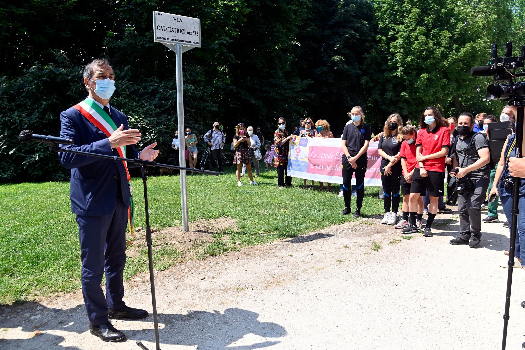 Questa mattina il Comune di Milano, nell’anniversario di quella celebre gara, ha intitolato alle calciatrici del 1933 una via all’interno del Parco Sempione, dietro all’Arena Civica (lato via Legnano) e ha posto un totem per ricordarne la storia. Alla cerimonia hanno partecipato il Sindaco di Milano, Giuseppe Sala, la consigliera comunale Anita Pirovano, promotrice dell’iniziativa in Consiglio Comunale, Elisabeth Spina di Milan Academy, l’ex calciatrice azzurra Ilaria Pasqui (responsabile del Settore Femminile Inter).