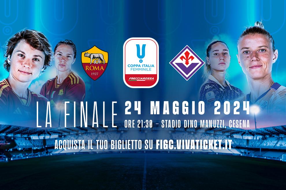 Sale l'attesa per la finale della Coppa Italia Femminile Frecciarossa, in programma venerdì 24 maggio (ore 21.30) allo stadio 'Dino Manuzzi' di Cesena. A sfidarsi saranno la Roma, che pochi giorni fa si è nuovamente laureata campione d'Italia e che giocherà la quarta finale consecutiva, e la Fiorentina, che tornerà a disputare l'atto decisivo della competizione a distanza di cinque anni.