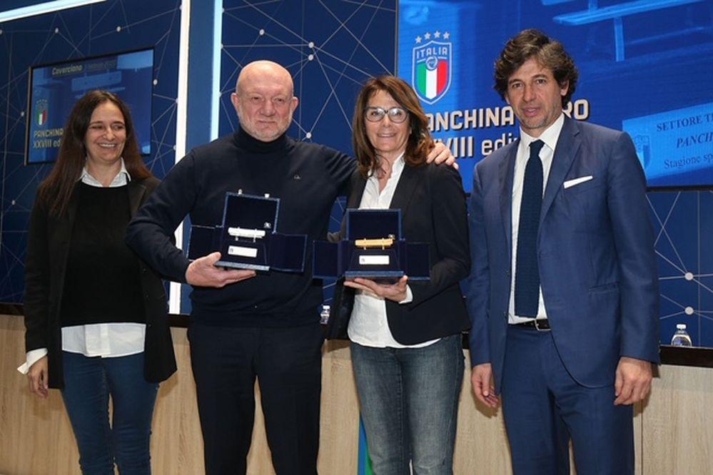 Sono stati premiati questa mattina a Coverciano i vincitori della ventottesima edizione della Panchina d’oro, il prestigioso riconoscimento aperto per la prima volta anche ai migliori allenatori del movimento femminile. La Panchina d’oro è stata consegnata dalla presidente della Divisione Calcio Femminile, Ludovica Mantovani, a Elisabetta Bavagnoli, l’allenatrice della Roma che - insieme alla Ct Milena Bertolini e a Carolina Morace - è una delle tre allenatrici donne in Italia ad aver conseguito a Coverciano la massima qualifica per un tecnico, quella UEFA Pro. La Panchina d’argento, invece, è stata ricevuta dall’allenatore dell’Empoli Ladies, Alessandro Pistolesi, che la passata stagione ha portato le toscane in Serie A.