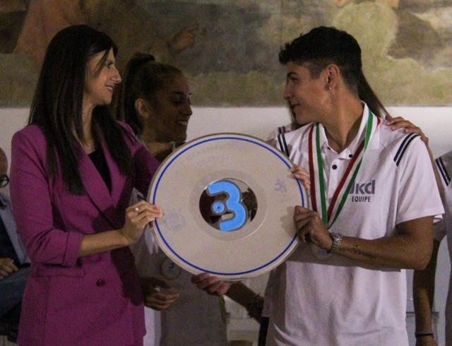 Nel corso dell’evento il club è stato premiato con la targa destinata alla vincitrice dello scorso campionato cadetto dalla presidente della Divisione Serie B Femminile, Laura Tinari, che ha consegnato il trofeo nelle mani dello storico capitano della squadra Paola di Marino. "Ringrazio per l’invito il presidente Alessandro Maiello, il presidente onorario Raffaele Carlino e l’amministrazione comunale - ha dichiarato Tinari - faccio i complimenti al Napoli Femminile perché si è imposto in un campionato avvincente ed equilibrato, che anche in questa stagione vedrà ai nastri di partenza piazze importanti e società che hanno fatto la storia del movimento. Ora per queste ragazze si apriranno le porte del professionismo, un passaggio storico che ha permesso alle calciatrici di vedere riconosciuti i propri diritti e che, ne sono certa, avvicinerà sempre più bambine al calcio".
