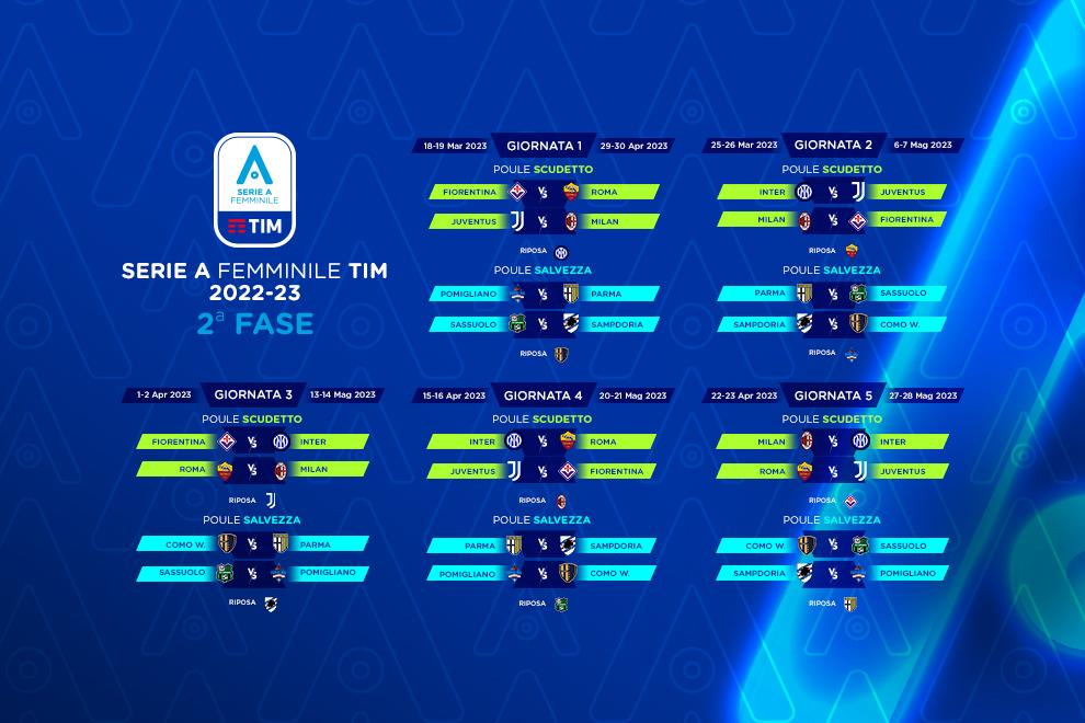 Da oggi, le dieci squadre protagoniste della Serie A conoscono il loro cammino fino al 27 maggio, giorno in cui si concluderà una stagione che proseguirà poi con la finale di Coppa Italia e con l'impegno della Nazionale nel Mondiale in Australia e Nuova Zelanda. Il regolamento prevede che, in caso di arrivo a pari punti tra due o più squadre al termine delle due poule, contino i punti ottenuti e la differenza reti nei quattro scontri diretti, due della prima fase e due della seconda (per la classifica del campionato clicca qui).