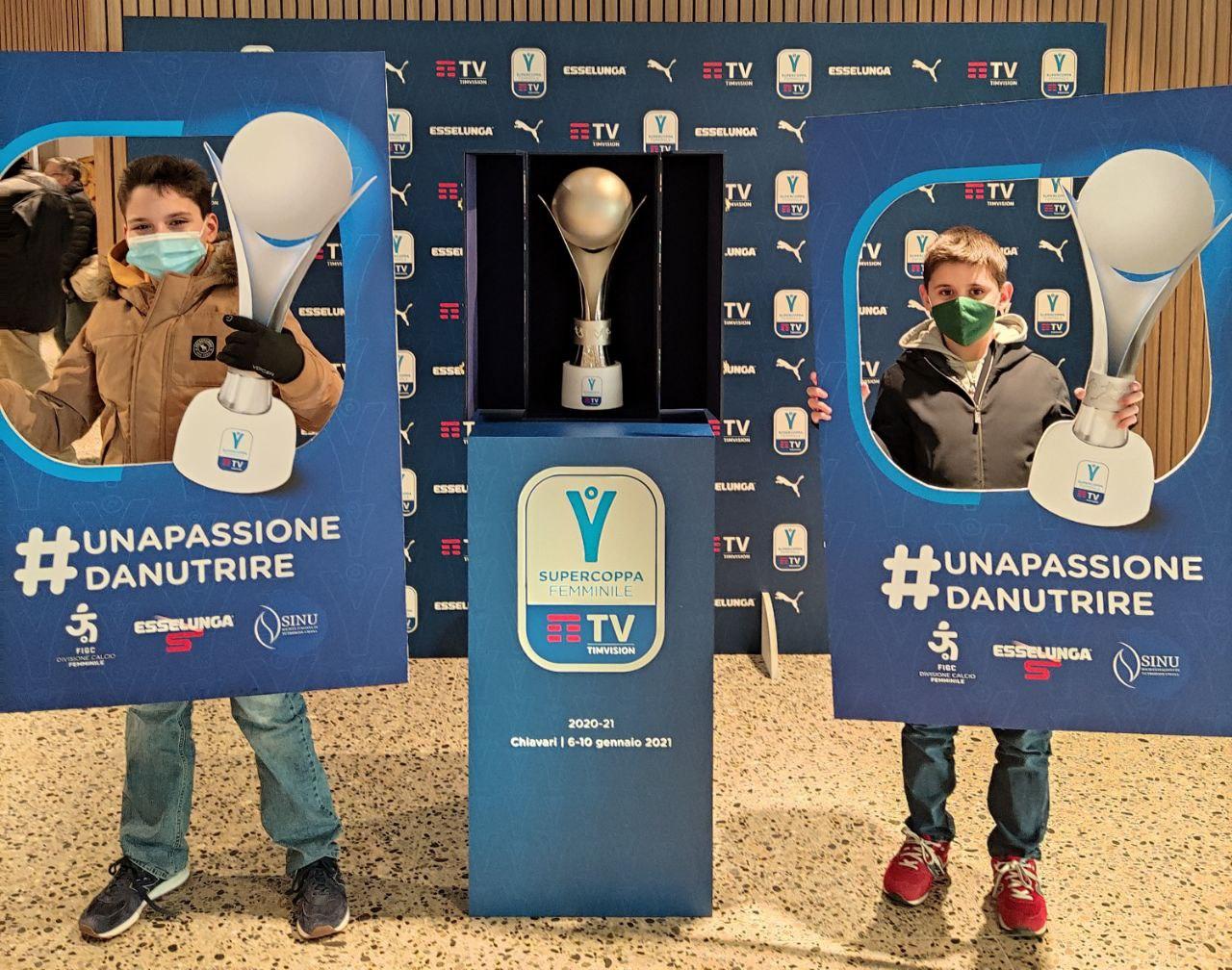 È stato esposto oggi, presso il negozio di Via Piave a Genova, il trofeo della Supercoppa Femminile TIMVISION, a simboleggiare la collaborazione che lega Esselunga alla Divisione Calcio Femminile, di cui l’azienda è premium partner. Una piacevole sorpresa per i visitatori del nuovo punto vendita - il primo del capoluogo ligure - che hanno potuto scattare foto ricordo con la coppa a due giorni dall’atto conclusivo della competizione.