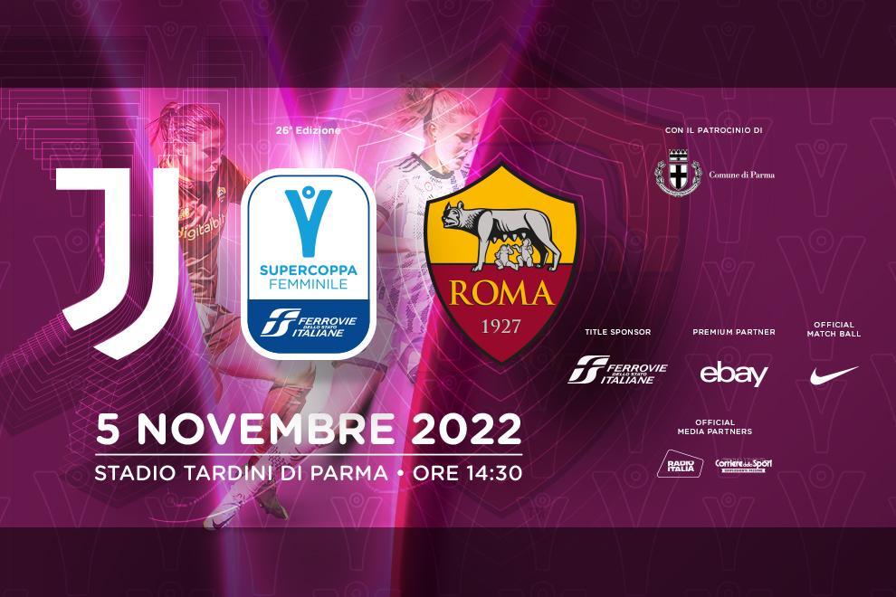 La Supercoppa Ferrovie dello Stato Italiane tra la Juventus campione d’Italia e vincitrice della Coppa Italia e la Roma - che ha chiuso il campionato al secondo posto ed è stata finalista dell'ultima edizione della Coppa Italia - sarà presentata giovedì 27 ottobre alle ore 11.30 in una conferenza stampa che si terrà presso la sala rappresentanza della Residenza Municipale di Parma e a cui parteciperanno il presidente della Divisione Calcio Femminile della Figc Ludovica Mantovani, l'assessore allo sport del comune di Parma Marco Bosi, il direttore sportivo della squadra femminile del Parma Calcio Domenico Aurelio e un rappresentante del Gruppo Fs. I giornalisti intenzionati ad assistere all’evento possono richiedere l’accredito inviando una mail all’indirizzo n.gaetani@figc.it, indicando il numero di tessera professionale e la testata di riferimento.