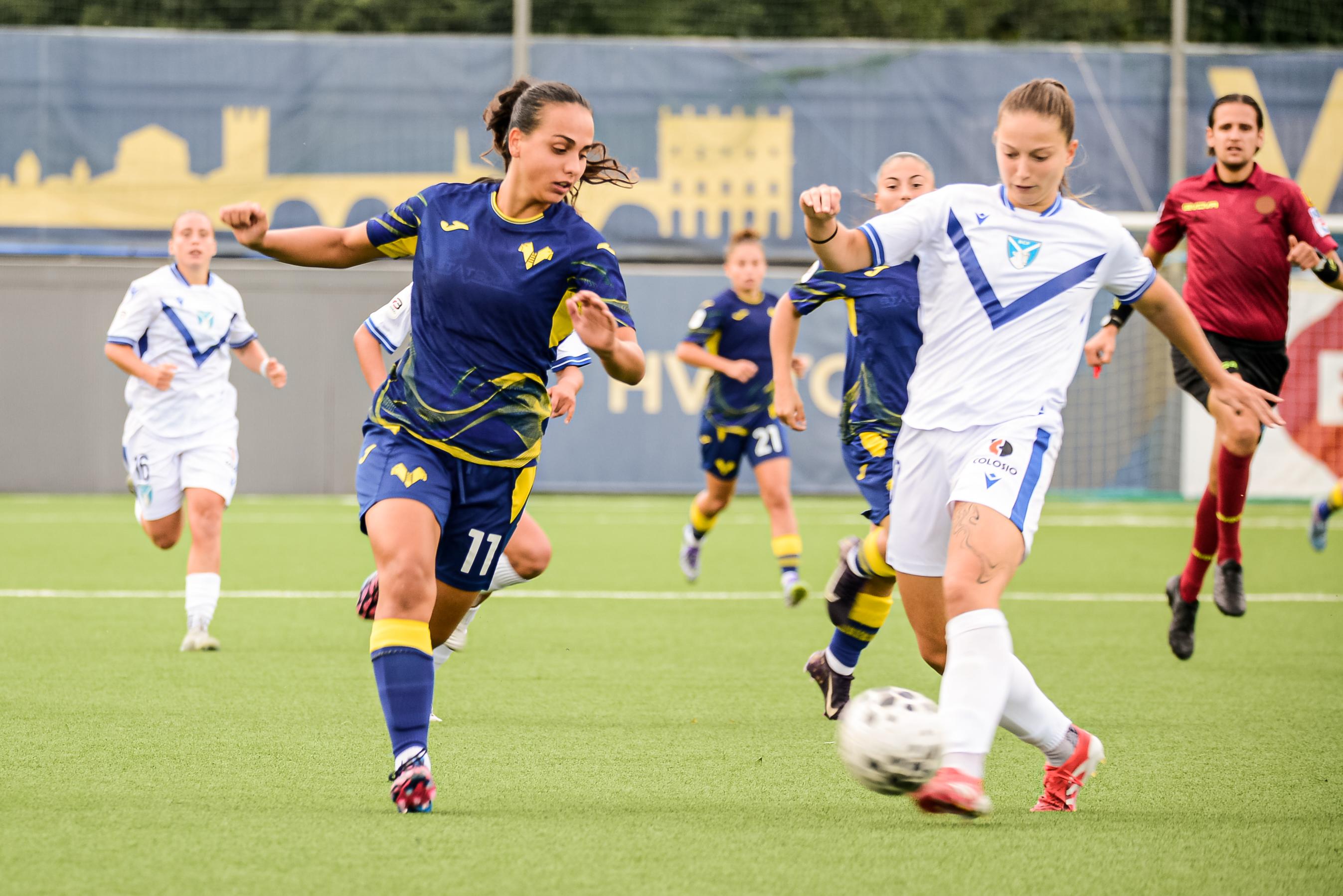 Allo stadio “Olivieri”, le ospiti sbloccano il parziale dopo appena cinque minuti con Mariani dalla distanza e arrotondano al 24’ con Magri sugli sviluppi di un calcio d’angolo. A inizio ripresa le scaligere vanno vicine alla rete dell’1-2 con la subentrata Silvioni, ma al 52’ vengono punite in contropiede da Cacciamali, lanciata da Magri in profondità. Nel finale le undici di Bragantini vanno a segno con Colombo, ma al triplice fischio festeggiano le avversarie, che salgono a nove punti in classifica portandosi a +3 sulle rivali di giornata e sulla Res Donna Roma, che per agganciare di nuovo la vetta dovrà superare il Como 1907 domenica 28 alle 15.00.