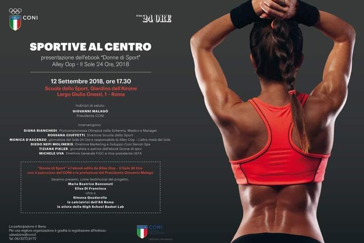 Domani, mercoledì 12 settembre, alle h. 17:30 alla Scuola dello Sport del CONI (Giardino dell’Airone, Largo Giulio Onesti, 1) si terrà l’incontro "Sportive al Centro", presentazione dell’ebook "Donne di Sport" edito da Alley Oop – Il Sole 24 ore. Il libro, che racconta la storia di dodici campionesse italiane che si sono distinte per le loro imprese atletiche, contiene un capitolo dedicato al capitano della Nazionale femminile Sara Gama.