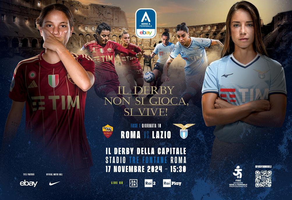 ‘Il derby non si gioca, si vive’. Questo il claim scelto dalla Divisione Serie A Femminile Professionistica per presentare il derby della Capitale, la sfida - attesissima da giocatrici e tifosi - che infiammerà la 10ª giornata della Serie A eBay. Appuntamento domenica alle 15.30 al ‘Tre Fontane’ di Roma, con il match che sarà trasmesso in diretta su Rai 2 e DAZN.