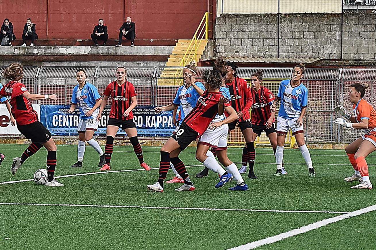 Nell’anticipo delle 12.30, bastano 15 minuti alle rossonere di Ganz per battere il Pomigliano di Panico. Allo stadio "Ugo Gobbato" le lombarde sbloccano il punteggio all’8’ con Grimshaw, che raccoglie una sponda involontaria di Giacinti sugli sviluppi di un calcio d’angolo e trafigge Cetinja tra i pali. Le padrone di casa reagiscono con l’ottima punizione di Moraca che bacia il palo, ma al quarto d’ora è Tucceri che trasforma il calcio piazzato guadagnato da Thomas firmando il raddoppio rossonero. Le campane non demordono e cercano di guadagnare metri, ma Giacinti e compagne col trascorrere dei minuti abbassano i ritmi e controllano con ordine le offensive avversarie. Nella ripresa la chance più ghiotta per chiudere il match ce l’ha Grimshaw all’85’, ma la scozzese non calcia con il tempo giusto e il portiere del Pomigliano la anticipa senza problemi. Al triplice fischio il Milan festeggia la quinta vittoria in cinque trasferte nel campionato in corso e soprattutto il 50° successo nel torneo, rimanendo terzo in classifica a -2 dal Sassuolo.