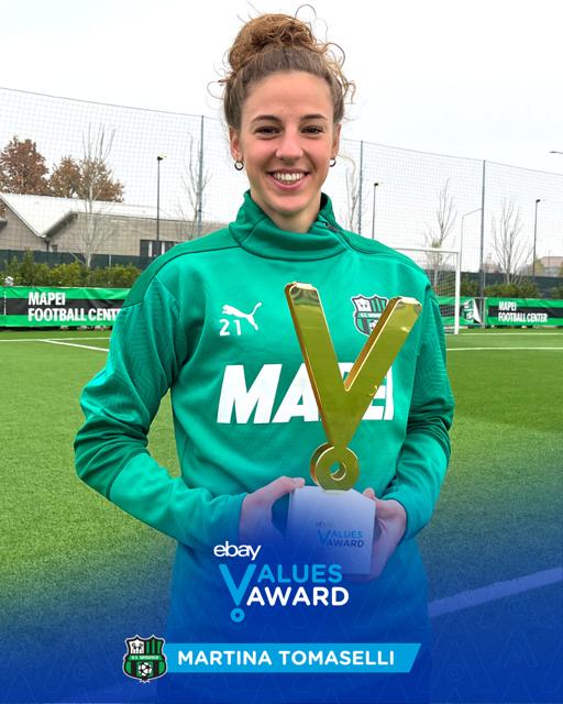 "Sorrido al dolore e vincerò anche questa volta". Detto, fatto. Martina Tomaselli ha mantenuto la sua promessa e a un anno di distanza dalla seconda lesione al crociato è finalmente tornata in campo. Un rientro scandito dai gol realizzati contro Inter e Como, una doppia liberazione che ha restituito alla Serie A TIM il talento cristallino della centrocampista classe 2001 del Sassuolo. La sua storia incarna i valori della perseveranza, della dedizione e della resilienza, questi i motivi che le hanno consentito di vincere l’edizione di novembre del eBay Values Award, il riconoscimento assegnato mensilmente alla calciatrice che si sarà distinta per il suo comportamento.