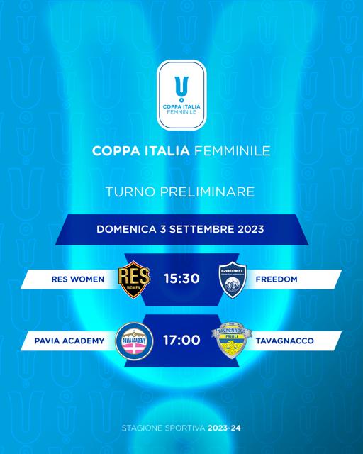 Sarà il turno preliminare della Coppa Italia a dare il via alla stagione 2023/24 del calcio femminile italiano. La nuova edizione della competizione, che vede come detentrice del trofeo la Juventus, si aprirà domenica con Res Women-Freedom (calcio d’inizio alle ore 15.30) e Academy Pavia-Tavagnacco (ore 17).