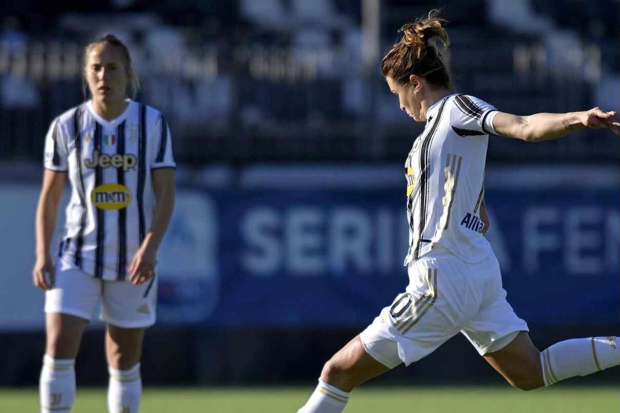 Nelle sfide delle 14.30 vincono anche le prime due della classe Juventus e Milan, che chiudono la prima giornata del girone di ritorno rispettivamente a 36 e 33 punti. A Vinovo le padrone di casa sbloccano la sfida con l'Hellas al 13’: Bonansea porta palla sulla fascia, elude Durante e serve Hurtig in mezzo all’area, che deve solo appoggiare in porta per il vantaggio bianconero. Il raddoppio arriva al 26’: dopo il gol in apertura la centrocampista svedese si invola sulla sinistra, va sul fondo e crossa a perfezione per Pedersen, che con un tempismo perfetto scaglia in porta il pallone del raddoppio. Le undici di Matteo Pachera non riescono a reagire e alla mezz’ora incassano anche il terzo gol; Ambrosi, nel tentativo di arginare Girelli nella propria area di rigore, la atterra in maniera irregolare e l’arbitro indica il dischetto. L’attaccante bianconera con un destro potentissimo firma il 3-0 e il suo 13esimo gol in questo campionato. La Vecchia Signora continua ad attaccare e al 37’ cala il poker sulle scaligere: sul calcio d’angolo battuto da Cernoia la deviazione di testa di Ambrosi favorisce Bonansea e la 29enne azzurra col tap infila Durante per il 4-0. A inizio ripresa Guarino toglie l'ammonita Rosucci per Zamanian e fa rifiatare Bonansea inserendo Maria Alves, ma la partita continua a giocarsi a senso unico e all’89’ proprio Zamanian dalla distanza porta lo score sul 5-0. Tre punti e 12esimo successo nel torneo in corso per la squadra di Rita Guarino, che mantiene il primo posto a +3 sul Milan di Maurizio Ganz, vittorioso sul campo della Florentia San Gimignano.