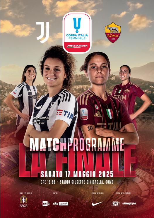 Sedici pagine da sfogliare gratuitamente, scaricare e conservare nei propri dispositivi: è online il match programme di Juventus-Roma, la finale della Coppa Italia Femminile Frecciarossa, in programma domani, sabato 17 maggio, allo stadio 'Giuseppe Sinigaglia' di Como. Da una parte le neocampionesse d'Italia, dall'altra le detentrici del trofeo, avendolo vinto nel 2024 a Cesena dopo due successi di fila della Juventus (2023 a Salerno, 2022 a Ferrara) proprio in finale contro la Roma. All'interno i saluti delle istituzioni (a partire dal presidente della FIGC Gabriele Gravina e della presidente della Divisione Serie A Femminile Professionistica Federica Cappelletti), le rose e le statistiche delle due finaliste, gli Opta Facts, l'albo d'oro e il riepilogo di tutti i precedenti tra le bianconere e le giallorosse, che si sono divise le ultime cinque edizioni del trofeo.