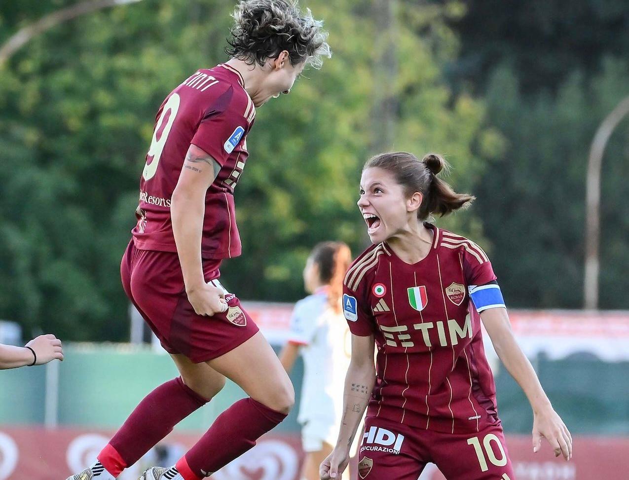 A inizio ripresa Viens prende il posto di Pilgrim, ma è di Giacinti il primo squillo nel secondo tempo: la centravanti si libera bene da ottima posizione ma l’arbitro ferma tutto per fuorigioco. Poco dopo si fanno pericolose Giugliano e Hanshaw sugli sviluppi di un calcio d’angolo, ma nemmeno in questo caso i due tentativi vanno a buon fine. L’approccio determinato delle giallorosse scuote le ospiti, che si costruiscono ben tre chances, tutte con Dompig protagonista: Ceasar blocca la sua conclusione al volo dalla distanza al 54’, un minuto dopo l’olandese calcia a lato, e al 58’ sul suo traversone Nadim sbaglia la misura del colpo di testa. Le rossonere sembrano riguadagnare spazi, ma il match gode di un vivace equilibrio, con costanti ribaltamenti di fronte. Dal 73’ Bakker è costretta a rinunciare a Dompig, uscita dolorante dopo un contrasto duro con Minami (punita con il giallo dal direttore di gara), e sostituita da Marinelli. L’episodio che cambia la partita arriva però a un quarto d’ora dal 90’: Viens guadagna il fondo dalla corsia di sinistra, crossa in mezzo e Giacinti, con un’incornata perfetta sul secondo palo, completa la rimonta. Nel finale il forcing del Milan alla ricerca del pareggio apre spazi in contropiede per le capitoline, che rischiano qualcosa di troppo su un paio di situazioni ma falliscono anche il colpo del ko con Thogersen, Greggi e Glionna (al posto di Kumagai e Haavi dal 67’). La difesa giallorossa resiste agli ultimi assalti delle avversarie e al triplice fischio la Roma festeggia la terza vittoria nel campionato in corso, che le consente di riportarsi al quarto posto in classifica con 12 punti, a -7 dalla vetta, a -3 dall'Inter e a +2 sulle rivali di giornata.