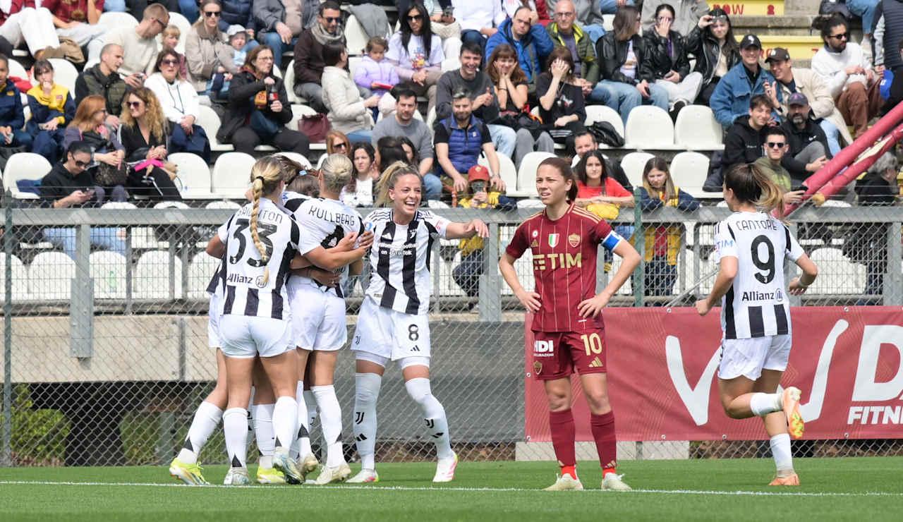 A inizio ripresa si invertono i ruoli, con la Roma che attacca nel tentativo di riaprire il match e le ospiti che difendono compatte. La prima giocata pericolosa è di Haavi, che costringe Peyraud-Magnin a un intervento in allungo, ma la manovra offensiva delle capitoline è talvolta imprecisa e Spugna al 59’ effettua tre sostituzioni: Troelsgaard rileva Linari, Dragoni Pandini e Corelli Pilgrim. Anche Canzi, sulla panchina opposta, ne cambia tre: Thomas lascia spazio a Krumbiegel, Rosucci a Schatzer e Cantore a Vangsgaard. A rivelarsi più efficaci sono le scelte del tecnico giallorosso: Dragoni e Corelli consentono infatti alle padrone di casa di alzare il baricentro e di guadagnare metri, arrivando alla fine ad accorciare le distanze. Al minuto 83 Giacinti raccoglie il suggerimento di Troelsgaard e con un destro al volo trafigge Peyraud-Magnin, siglando la sua 50ª rete con la maglia della Roma in tutte le competizioni – solo Giugliano finora (53) aveva già raggiunto questo traguardo con il club. Nel sesto minuto di recupero le capitoline sprecano una clamorosa occasione per il 2-2 in contropiede, con Glionna che di tacco mette un pallone a rimorchio per Corelli e quest’ultima che calcia alto. La Juventus tira un sospiro di sollievo e al triplice fischio festeggia un successo fondamentale nella marcia verso il titolo di Campione d’Italia. Il 2-1 conquistato al Tre Fontane vale infatti il 16° successo nella Serie A eBay 24/25 per le piemontesi e un +10 in classifica sull’Inter (anche se con una partita in meno).