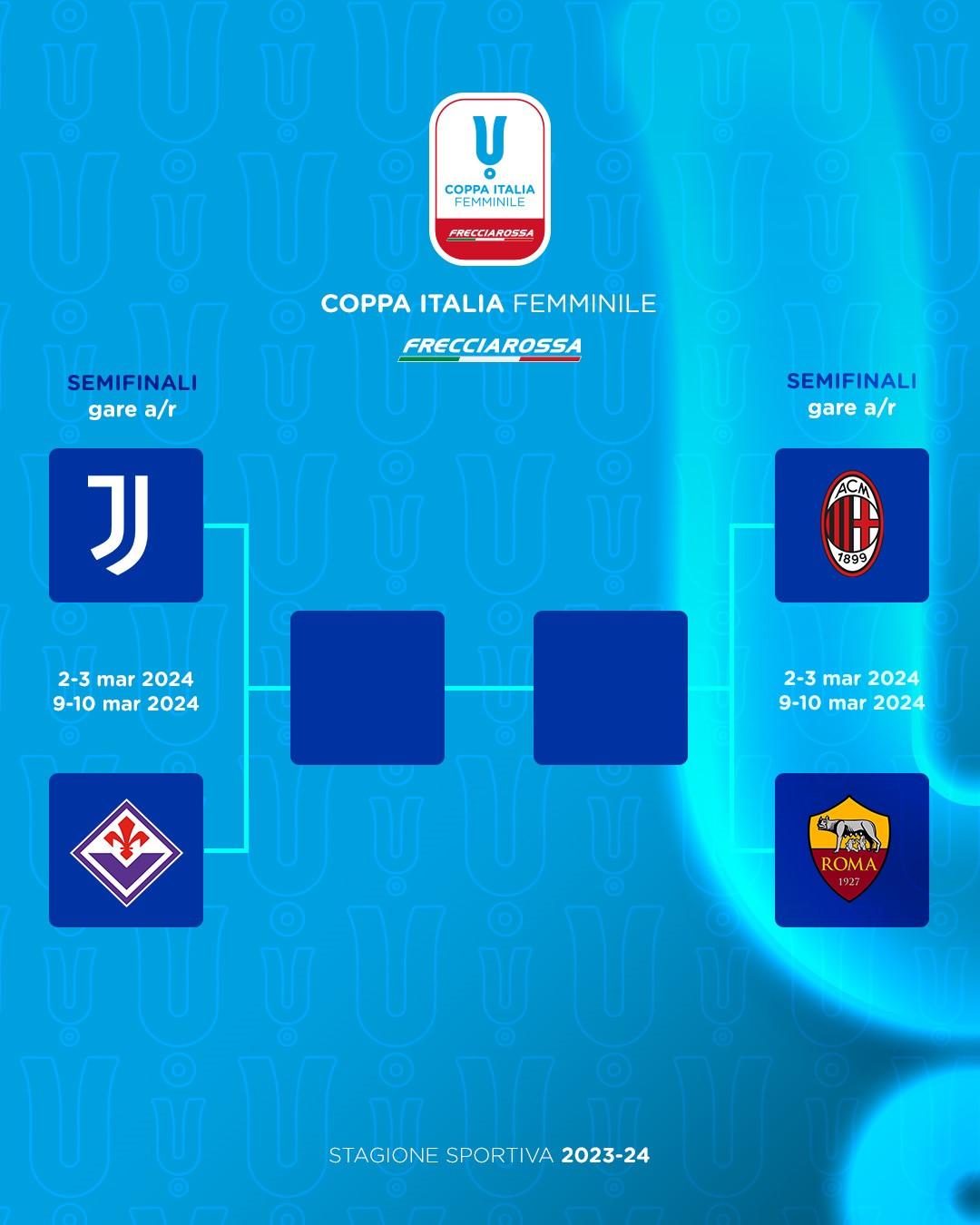 Le semifinali si disputeranno a inizio marzo (andata il 2-3, ritorno il 9-10), con i primi 90’ che si giocheranno in casa di Fiorentina e Milan.