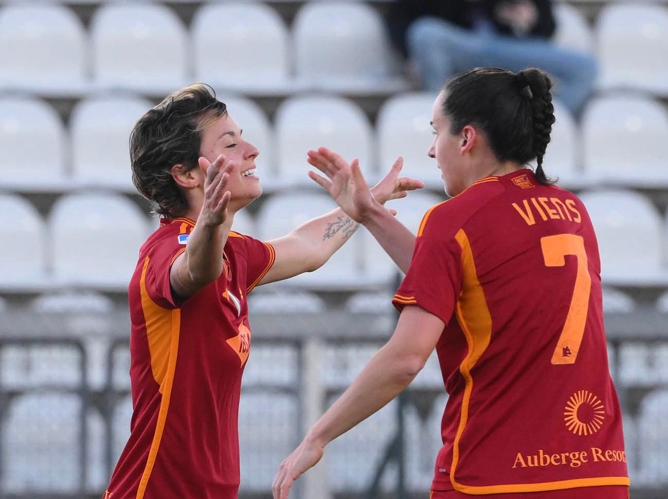 Al Tre Fontane il match si sblocca dopo soli otto minuti, quando Giacinti viene agganciata da Passeri nell’area di rigore neroverde e guadagna il quinto calcio di rigore della Roma nel campionato in corso. L’attaccante spiazza Lonni tra i pali e firma il vantaggio delle capitoline, ritrovando un gol che le mancava da ottobre scorso (doppietta contro la Sampdoria). Dopo tre minuti la numero nove giallorossa si ripete su azione: retroguardia neroverde sorpresa e pallone in rete dopo una prima respinta di Passeri. Con questo sono 200 gol nel massimo per la classe ’94, traguardo già tagliato solo da Cristiana Girelli (202 al momento) considerando la stagione della sua prima firma nella competizione (2012/13 con la maglia del Napoli per la centravanti della Roma).