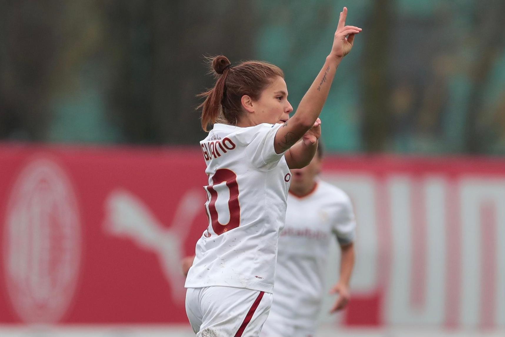 La Roma non si ferma più: le giallorosse, ospiti delle rossonere, centrano la 10ª vittoria in questo campionato e si confermano leader della classifica di Serie A Tim 22/23 con 30 punti, a +6 sulla Juventus a 24. Dopo un primo tempo all’insegna dell’equilibrio, al minuto 55 la formazione di Spugna sblocca il parziale. Cross di Haavi in mezzo all’area e stacco di testa dell’ex Giugliano, che firma l’1-0 per le capitoline. Il Milan di Ganz prova a reagire con una veloce ripartenza ma al 62’ subisce il raddoppio: Serturini sfonda sulla corsia di sinistra e con un bel cross pesca ancora Giugliano, che controlla e col mancino batte Giuliani tra i pali, realizzando la sua prima doppietta in campionato in maglia giallorossa (la più recente nel torneo risaliva al maggio 2017, con l’AGSM Verona). Le rossonere tentano di recuperare il doppio svantaggio con i cambi, ma al triplice fischio festeggia la Roma, che centra l’ottavo successo consecutivo in questa Serie A Tim, il decimo in generale in 11 giornate. Quinta sconfitta invece per il Milan, che con 16 punti resta al quinto posto a -3 dall’Inter.