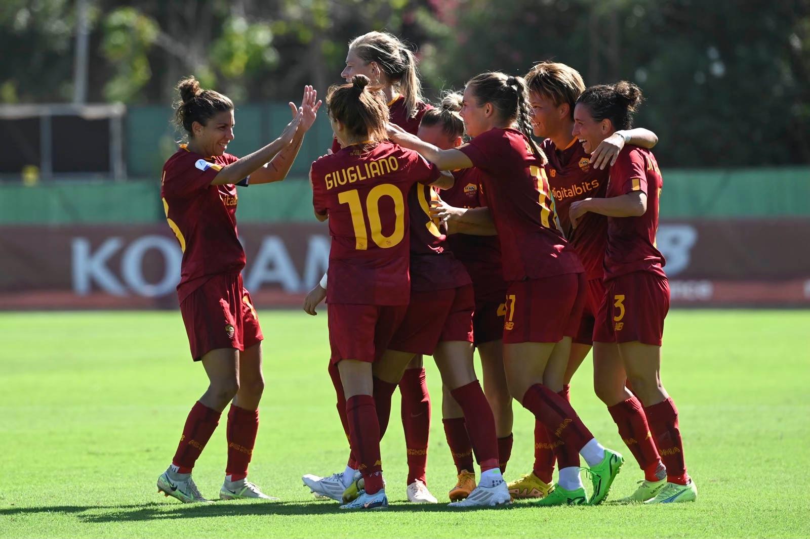 Allo stadio "Tre Fontane", dopo qualche minuto in equilibrio e un paio di azioni non concretizzate da Linda Tucceri e Andressa Alves, crescono le padrone di casa, che costringono le ospiti ad abbassare il baricentro. Il pressing delle capitoline si traduce nel gol del vantaggio al 19’: corner di Giugliano, Fusetti allontana, ma il pallone termina prima sui piedi di Serturini, poi su quelli di Minami, che a distanza ravvicinata non sbaglia, realizzando il suo primo gol in Serie A. Le undici di Spugna, sull'1-0, intensificano ulteriormente la manovra offensiva e, dopo aver sfiorato tre volte il raddoppio con Serturini, Andressa e Giacinti, lo trovano al 43’ proprio con l’ex illustre della gara. La centravanti riceve palla per vie centrali, salta la difesa avversaria in netto ritardo, si sposta il pallone sul sinistro e batte un’incolpevole Giuliani tra i pali, mettendo a referto il secondo sigillo in giallorosso nella competizione, il primo davanti al suo nuovo pubblico.