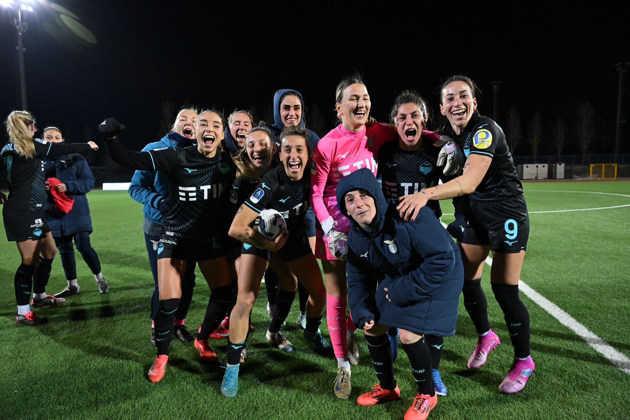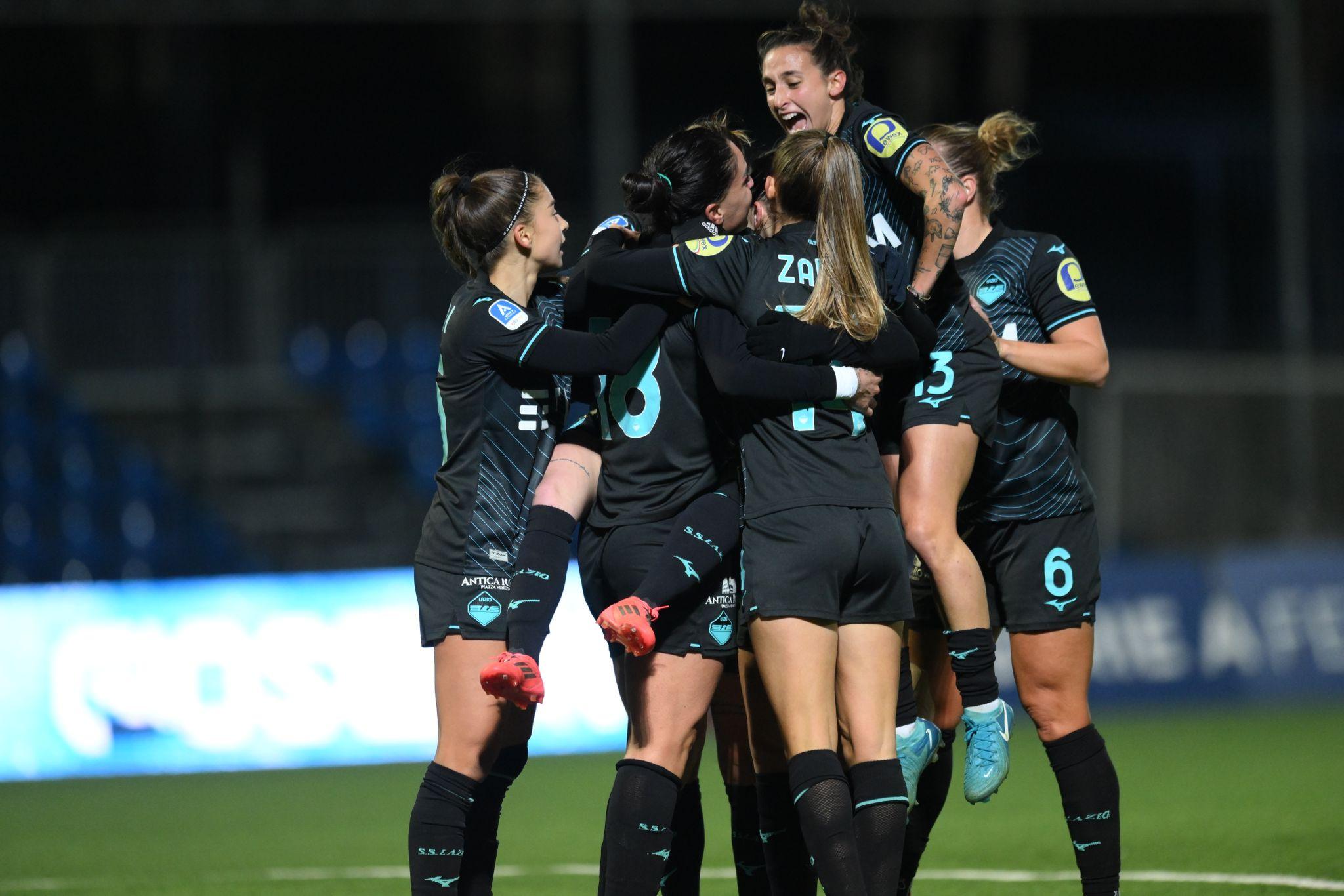 Allo Stadio Giuseppe Piccolo bisogna attendere quasi 10’ per la prima, vera emozione. Kullashi, appena giunta in azzurro tramite prestito semestrale dall’Inter, riceve in area un lancio dalle retrovie e prova un tiro-cross la cui parabola, molto insidiosa, termina di poco a lato rispetto al palo alla destra di Cetinja. Sul ribaltamento di fronte, ecco invece il primo fuoco d’artificio grazie al vantaggio laziale. Visentin apre l’azione imbucando in area per Goldoni e poi calciando da posizione interessante su rimpallo scaturito nel prosieguo della trama offensiva; il tiro del numero 99 viene murato ma la palla carambola sul piede destro di Piemonte, la quale incrocia rasoterra da posizione angolata, batte Bacic e firma l’1-0 ospite. Al 16’ matura la prima reazione delle padrone di casa. Kullashi inventa al limite con uno stupendo colpo di tacco smarcante; Moretti raccoglie l’invito e calcia a giro di destro, non trovando per poco lo specchio della porta avversaria. La formazione allenata da Mango fatica comunque a imbastire buoni possessi nell’ultimo terzo di campo, mentre la Lazio si affida soprattutto alle qualità nei duelli aerei e spalle alla porta di un’ottima Piemonte. La manovra biancoceleste si fa indubbiamente apprezzare di più, eppure anche la squadra di Grassadonia pecca di qualità nel momento in cui arriva sulla trequarti avversaria. Almeno fino agli ultimi cinque minuti del primo tempo, quando piazza un uno-due devastante. Al 40’ matura infatti il raddoppio. Sugli sviluppi di una rimessa laterale, Piemonte lavora ancora benissimo spalle alla porta in area e serve Le Bihan praticamente sulla linea di fondo; il numero 11 mette in mezzo un tracciante che attraversa tutta l’area piccola e trova Castiello, la quale deve soltanto spingere in rete da due passi. Tre minuti più tardi e la Lazio cala il tris. Piemonte sempre stupenda protagonista, con un tacco volante da applausi a lanciare nello spazio Goldoni. Quest’ultima percorre praticamente 30 metri palla al piede indisturbata, arriva al limite e scarica un destro nell’angolino basso, su cui Bacic non può proprio arrivare.