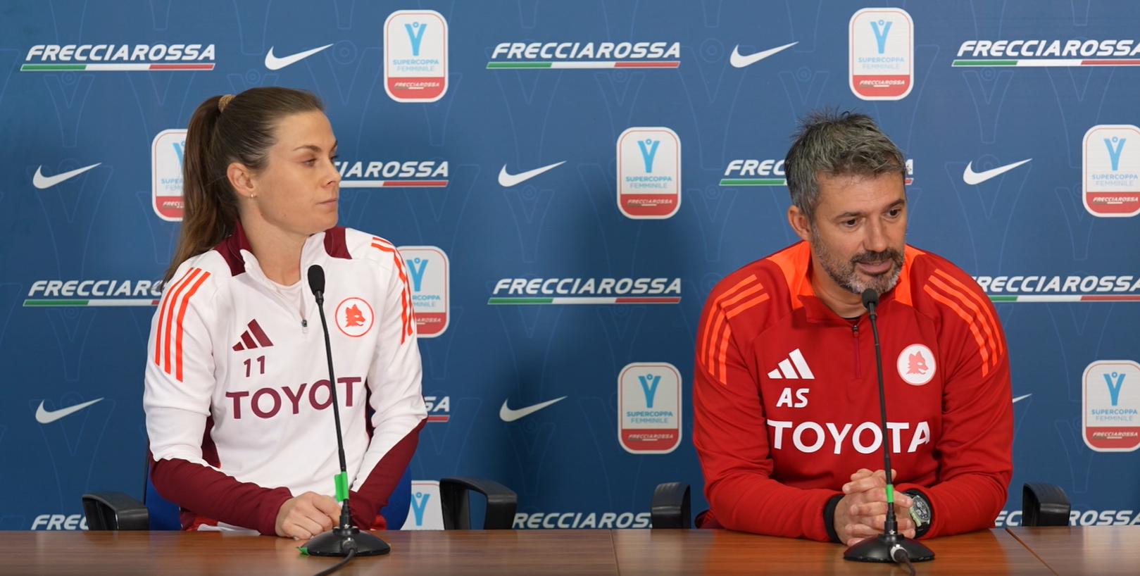 "Se penso alla finale dell’anno scorso, è stata una partita tiratissima, stranissima, che ci aveva visto sotto di due gol al 75’ - spiega l'allenatore giallorosso Alessandro Spugna -. Rispetto all'anno scorso, la Fiorentina ha cambiato atteggiamento: è una squadra più aggressiva e più qualitativa. Mi aspetto, come tutte le finali, una partita dove non c’è tanto da speculare, ma c’è da provare a vincere. Dovremo cercare di avere un atteggiamento importante in possesso palla: siamo una squadra che se ha il dominio della gara crea situazioni favorevoli. Ci abbiamo lavorato perché abbiamo sprecato tanto questa stagione". Una Roma che nella prima parte del campionato ha pagato le tante assenze e che ha giocato tantissimo tra campionato e coppe, ma che sta tornando a ranghi completi: "Il primo rinforzo vero sarà recuperare le calciatrici che non abbiamo avuto", spiega Spugna, che in queste ore ha accolto comunque la canadese Mia Pante e che da allenatore ha scritto la storia della Roma femminile. "La pressione è quella delle finali, è normale che ci sia ed è un bene. Le pressioni ce le vogliamo prendere, perché vuol dire che si sta giocando per qualcosa di bello. Vogliamo approcciare in maniera diversa rispetto alla Supercoppa dello scorso anno, e in una stagione come questa dove non siamo posizionate in maniera vantaggiosa in classifica questa può essere l'occasione per iniziare con un titolo. Non so se potrà condizionare il resto della stagione, ma è chiaro che vincerlo farebbe tanto per il morale".