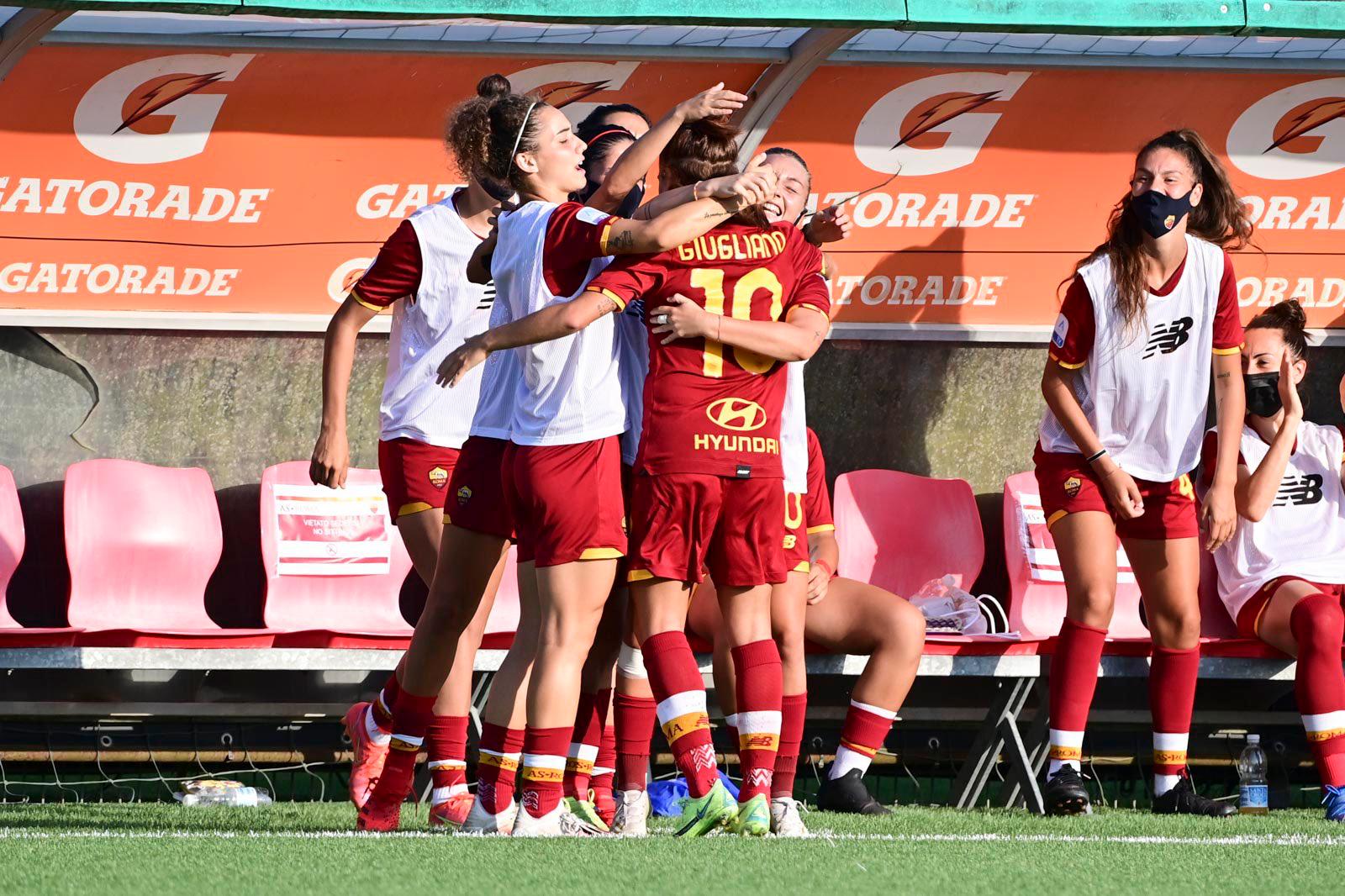 Milan, Roma e Sassuolo vincono gli anticipi della seconda giornata della Serie A TIMVISION e prendono il comando della classifica a punteggio pieno. Il primo match a sbloccarsi nel pomeriggio è quello in casa delle capitoline, impegnate contro il Napoli. Al 18’ infatti un tiro cross di Andressa si trasforma in un pallonetto vincente e la brasiliana diventa la prima giallorossa in gol nel campionato 21/22 (la vittoria nella gara d’esordio era stata frutto di tre autoreti dell’Empoli). Nei tre minuti successivi le padrone di casa si portano sul 3-0: al 20’ verticalizzazione di Giugliano, errore di Imprezzabile in fase di recupero e destro a giro di Serturini imprendibile per Aguirre; al 21’ è invece Giugliano ad andare a bersaglio su assist di Glionna. Le ospiti provano a riaprire la gara al 41’ con il colpo di testa vincente di Goldoni, ma allo scadere del primo tempo Bartoli allunga nuovamente la distanza con le avversarie siglando la rete del 4-1, propiziata ancora da un passaggio vincente di Glionna.
