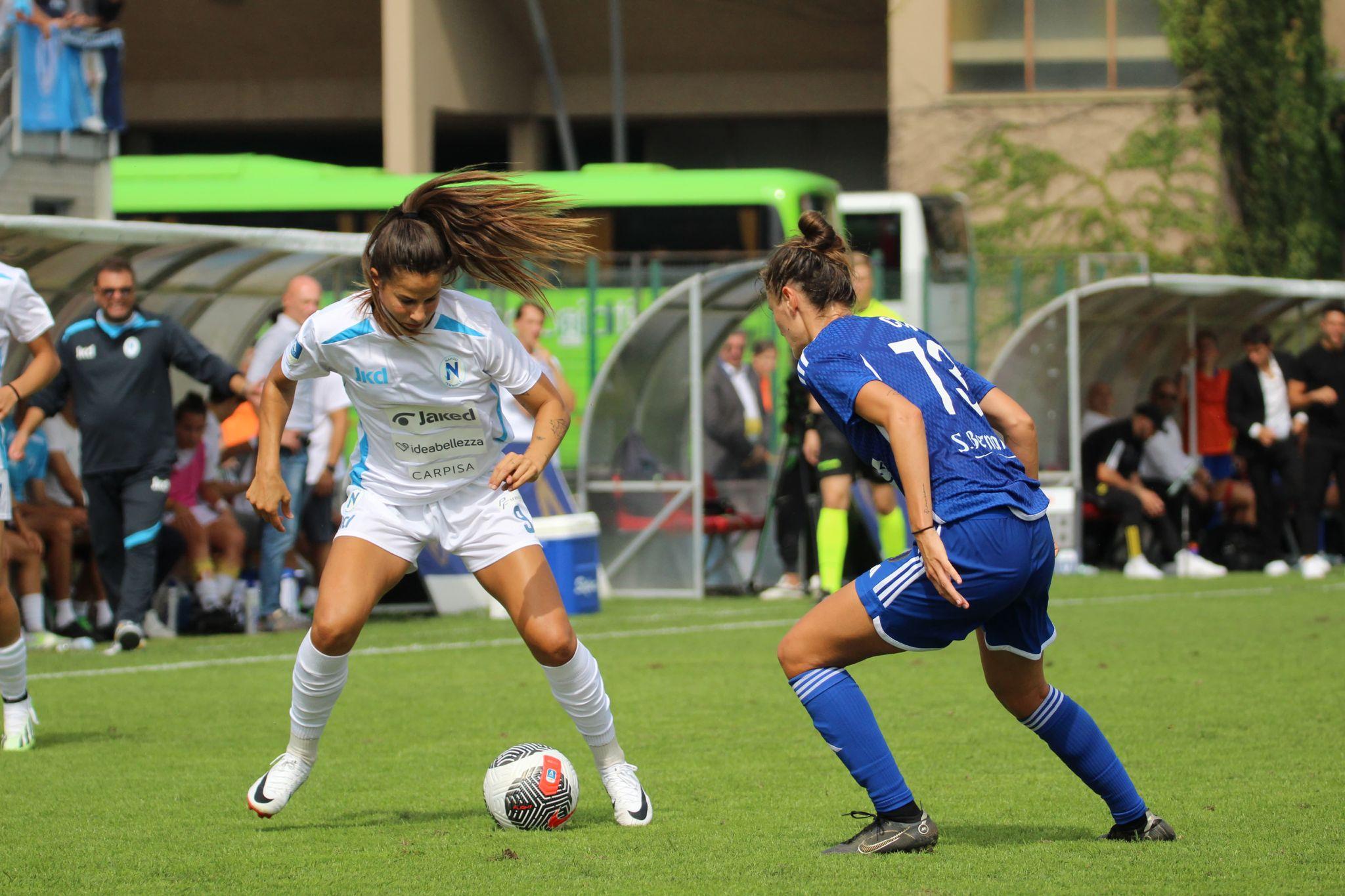 Centra tre punti, nei primi 90’ di questo campionato, anche il Como, che batte 2-1 il Napoli Femminile nel lunch match del "Ferruccio" di Seregno e inizia al meglio la sua avventura in Serie A sotto la guida di Bruzzano. Le lombarde approcciano con molta determinazione e al 31’ sbloccano il parziale con il neoacquisto Monnecchi: disimpegno sbagliato della retroguardia del Napoli, Martinovic intercetta il pallone e serve la compagna, che non sbaglia a tu per tu con Bacic. Le padrone di casa tengono le redini del gioco per tutto il primo tempo e al minuto 59 centrano il raddoppio: Sevenius, appena entrata in campo al posto di Martinovic, si avventa su un pallone respinto da Di Marino e con un mancino chirurgico firma il suo primo gol in Serie A. L’ex Milan (classe 2004) diventa la seconda più giovane straniera con almeno una rete all’attivo dall’inizio del campionato scorso – davanti a lei solo la 2006 Zara Kramzar. Dopo aver subito il secondo gol il Napoli di Seno reagisce e al 63’ mette paura al Como: Korenciova esce a vuoto sugli sviluppi di un corner e Corelli centra in pieno il palo. Il portiere delle lariane sbroglia una situazione complicata al 69’, ma la rete delle campane è nell’aria e arriva un minuto più tardi: del Estal stacca a perfezione sul gran cross di Chmielinski e con un’incornata vincente accorcia le distanze. Le ospiti tentano di sfruttare l’entusiasmo dell’1-2 costruendo due buone occasioni, nel finale ci prova anche il Como e al triplice fischio il risultato rimane invariato. Vince la formazione lombarda, che inaugura al meglio la nuova stagione di Serie A.