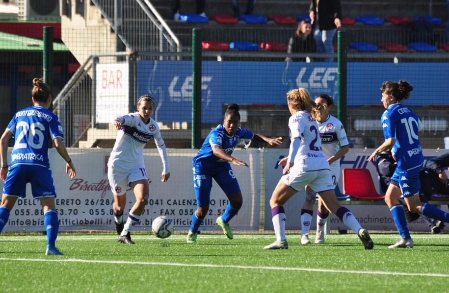 Molte meno emozioni nel derby toscano disputato allo stadio ‘Torrini’ di Sesto Fiorentino. Empoli e Fiorentina non vanno oltre lo 0-0, dando vita a un match molto combattuto sul piano fisico. Le azzurre si rendono pericolose soprattutto sugli sviluppi di calci piazzati e nella prima frazione di gioco colpiscono un palo con una conclusione in mischia di Domping. La reazione viola è affidata a Giacinti, schierata al centro dell’attacco al posto di Sabatino (entrata nel secondo tempo), ma Capelletti è brava a dire di no ai tentativi della calciatrice della Nazionale. Con il passare dei minuti l’undici di Patrizia Panico avanza il proprio baricentro, colpendo due legni con una bella girata di testa di Huchet e con un potente destro dalla distanza di Vigilucci.
