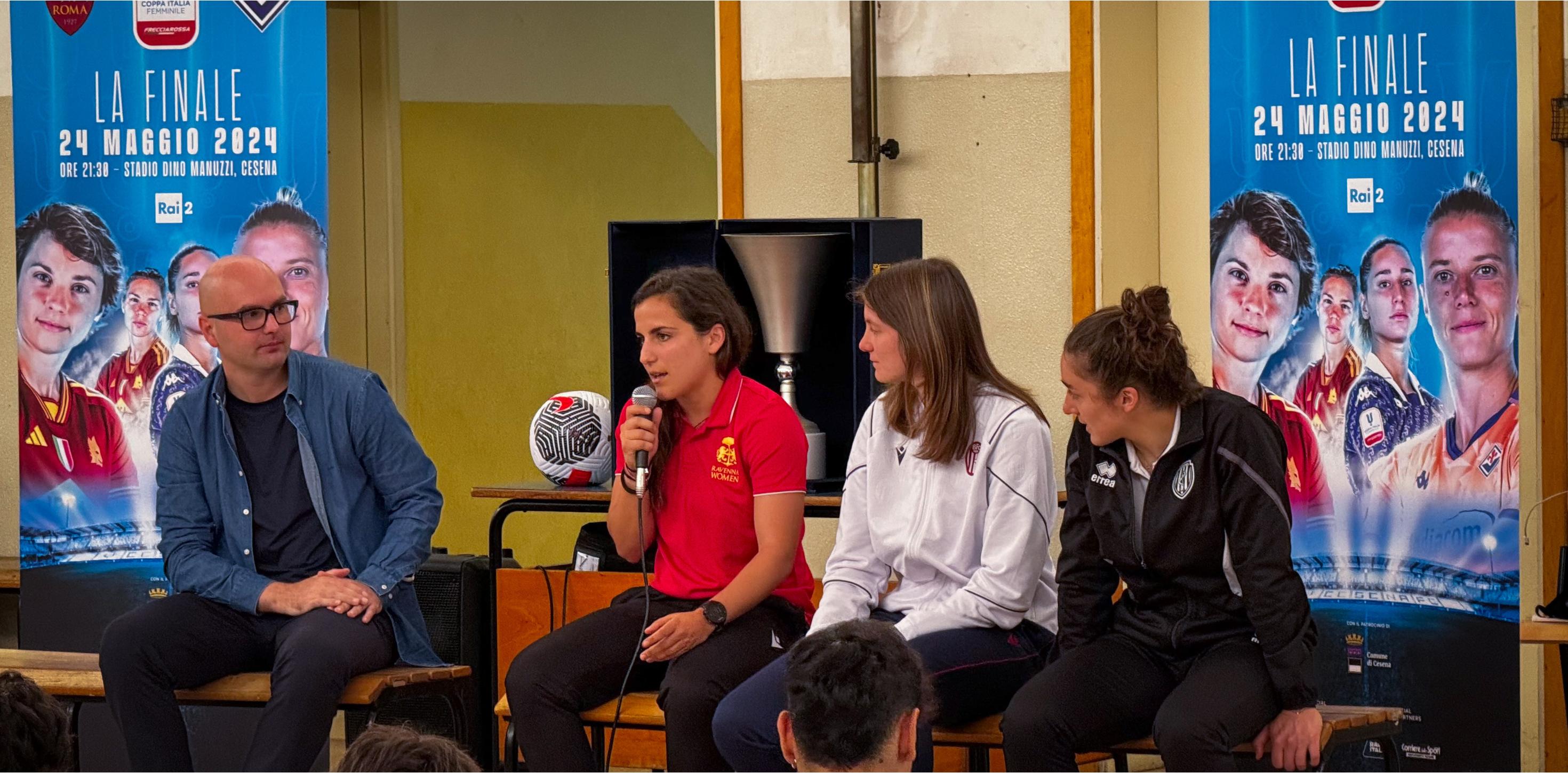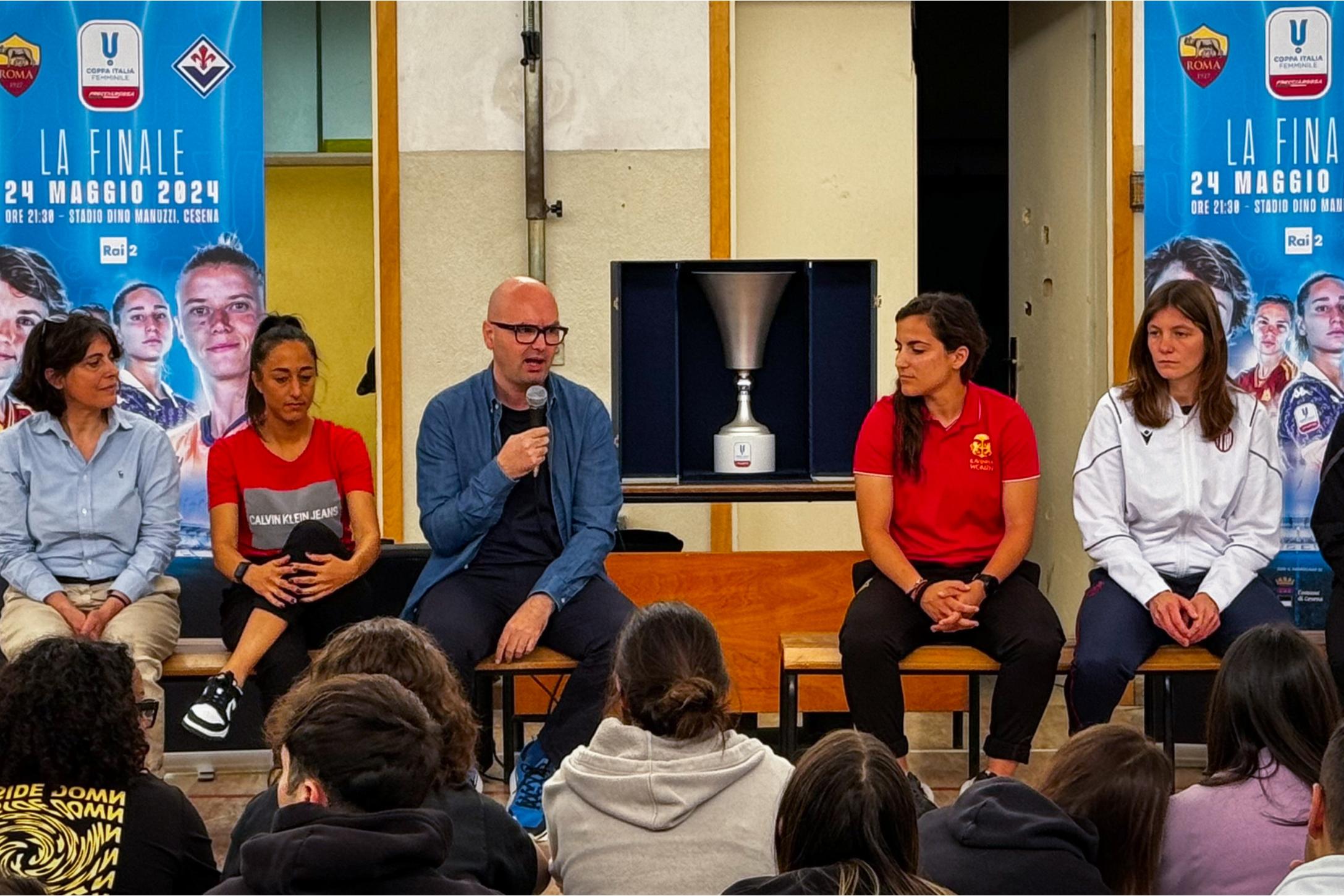 La finale di Coppa Italia Femminile Frecciarossa: una partita di calcio, un evento, un'occasione di condivisione di esperienze e di confronto. Dopo essere stato ammirato nel centro storico di Cesena, il trofeo che verrà alzato venerdì allo stadio 'Dino Manuzzi' è stato accolto da circa 150 studenti dell'Istituto Professionale di Stato 'Versari Macrelli', proprio a pochi passi dallo stadio che ospiterà il match tra Roma e Fiorentina.