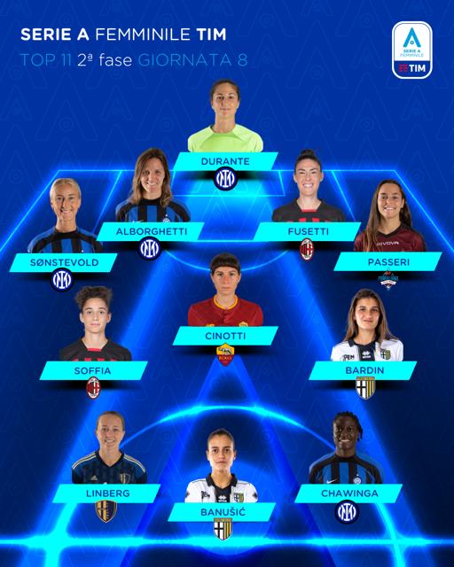 ● Angelica Soffia: Oltre a essere, con Chawinga, una delle due sole giocatrici che in questo turno di Serie A hanno segnato almeno un gol e servito almeno un assist, la centrocampista ha effettuato quattro tiri nel match con la Roma – record nella sfida condiviso con Piemonte.